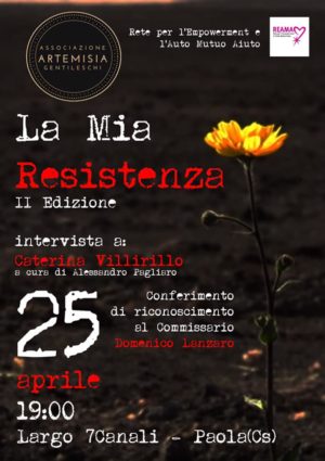 E’ stato questo il modo più cinico per dire addio a una Calabria di cambiamento e libertà. Tante forze ancora lasciano prevalere l’indifferenza. Io non mi rassegno e ribadisco oggi “La mia Resistenza” proprio qui dove ancora la rete sociale è ancora fragile e dove si perdono cosi opportunità per essere più forti insieme, per ottenere di più per un territorio che piange i suoi figli, sia quelli che muoiono fisicamente sia quelli che scompaiono moralmente giacchè costretti a partire altrove in cerca di quelle opportunità che sono state loro negate dalla propria terra.