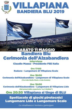 Nell’ambito degli adempimenti istituzionali legati all’ottenimento della prestigiosa Bandiera Blu assegnata dalla FEE (Foundation for Environmental Education – Fondazione per l’Educazione Ambientale) il Comune di Villapiana procederà, sabato 11 maggio, alla solenne cerimonia dell’Alzabandiera.
