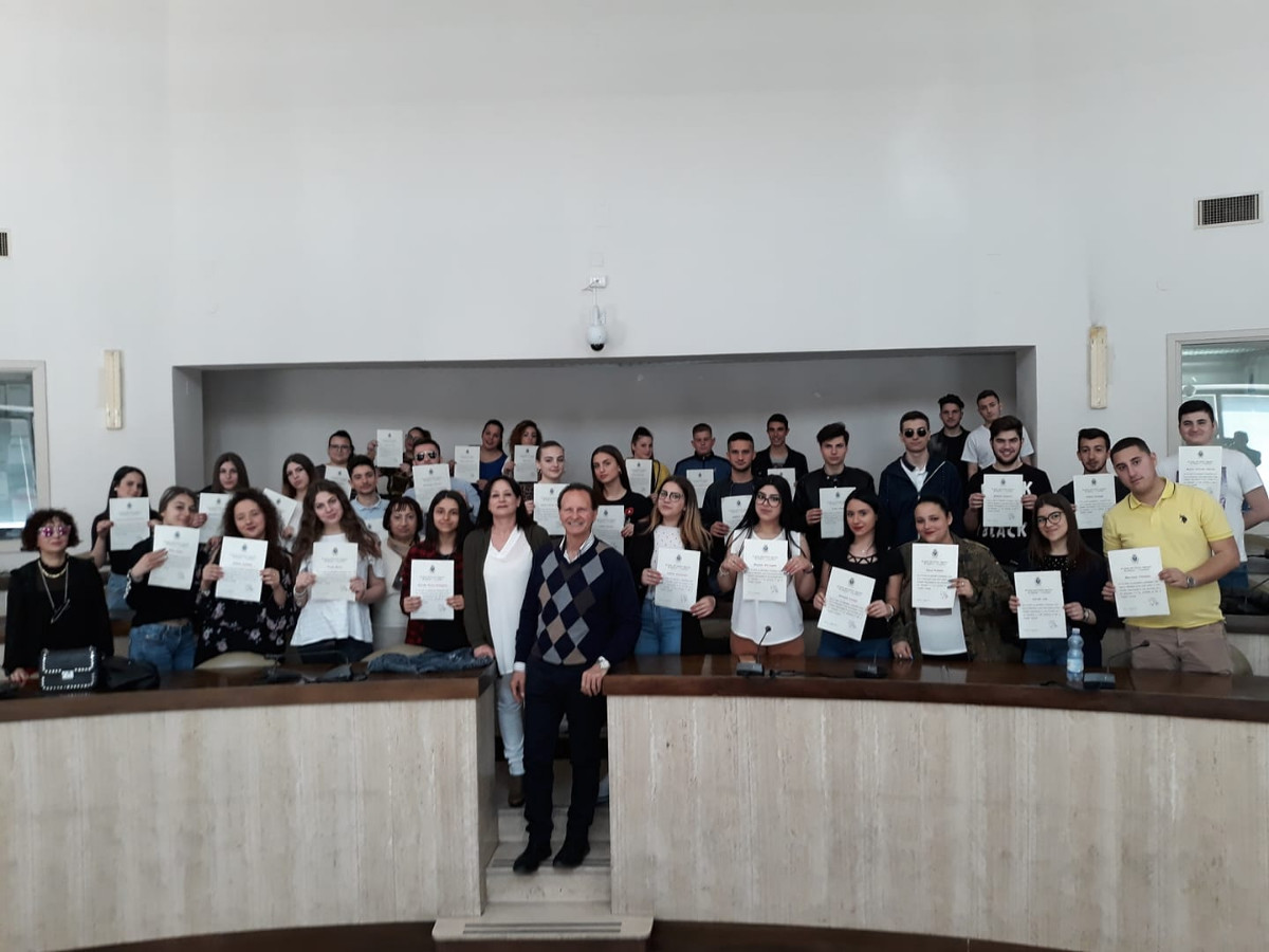 La consegna della pergamena con l’attestazione di riconoscenza è avvenuta questa mattina nella Sala Consiliare in una semplice ma partecipata cerimonia alla quale sono intervenuti l’assessore alla Pubblica Istruzione Francesco Pesce e la consigliera comunale Roberta Foresta che ha fatto tra trait d’union tra l’amministrazione e la scuola.