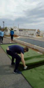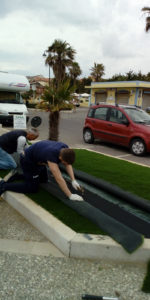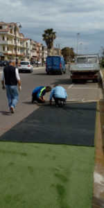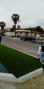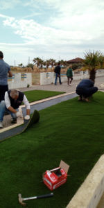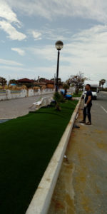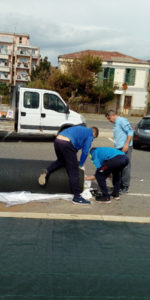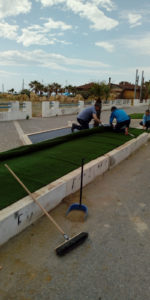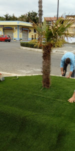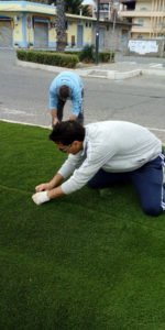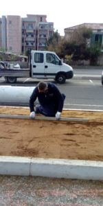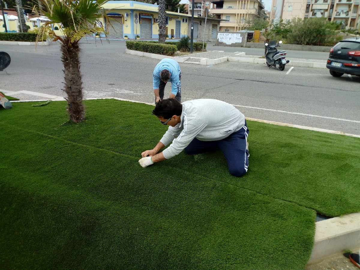 La fase finale è rappresentata dalla realizzazione del nuovo fondo, con l’inserimento di nuovo terriccio agricolo e dal posizionamento del manto erboso sintetico necessario in queste aree proprio per le peculiarità che presentano, in particolare la presenza di un flusso notevole di passanti, nel periodo primaverile-estivo, la mancanza di un sistema di irrigazione e la scarsa manutenzione rendono necessario questo tipo di utilizzo. La precisazione è doverosa considerato che qualcuno ancora si pone la domanda del perché si utilizzi erba sintetica.