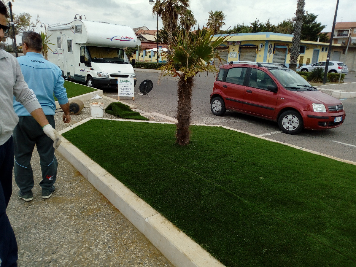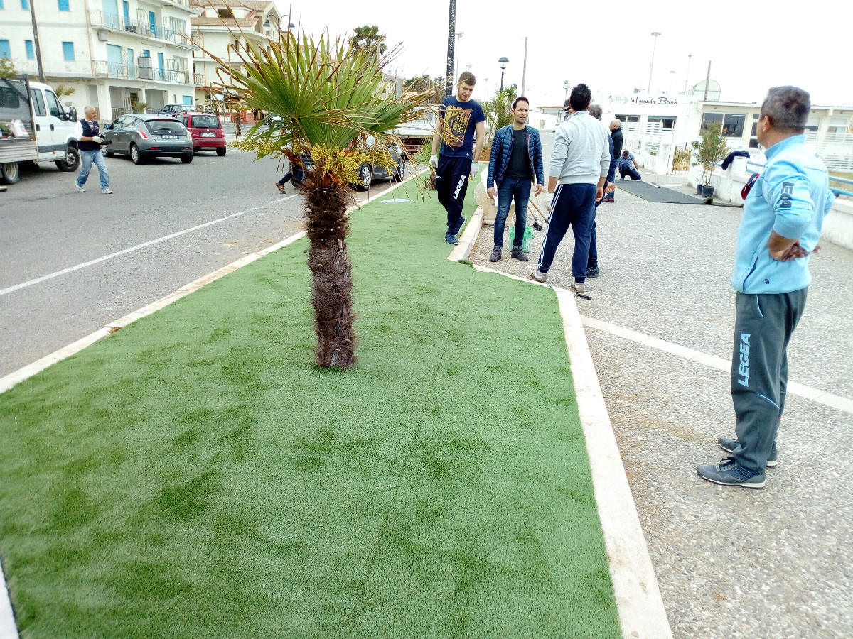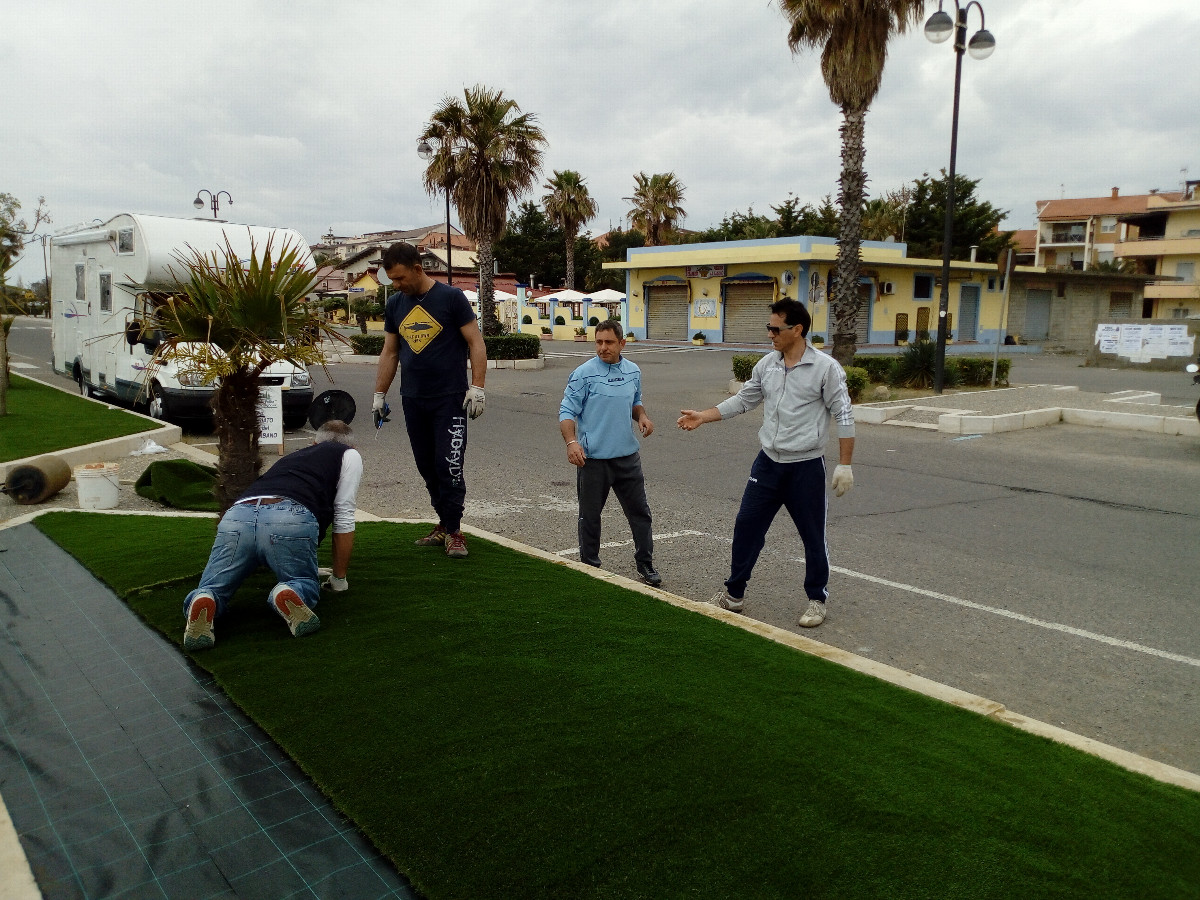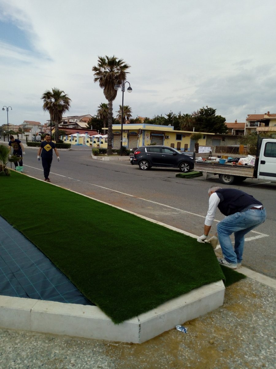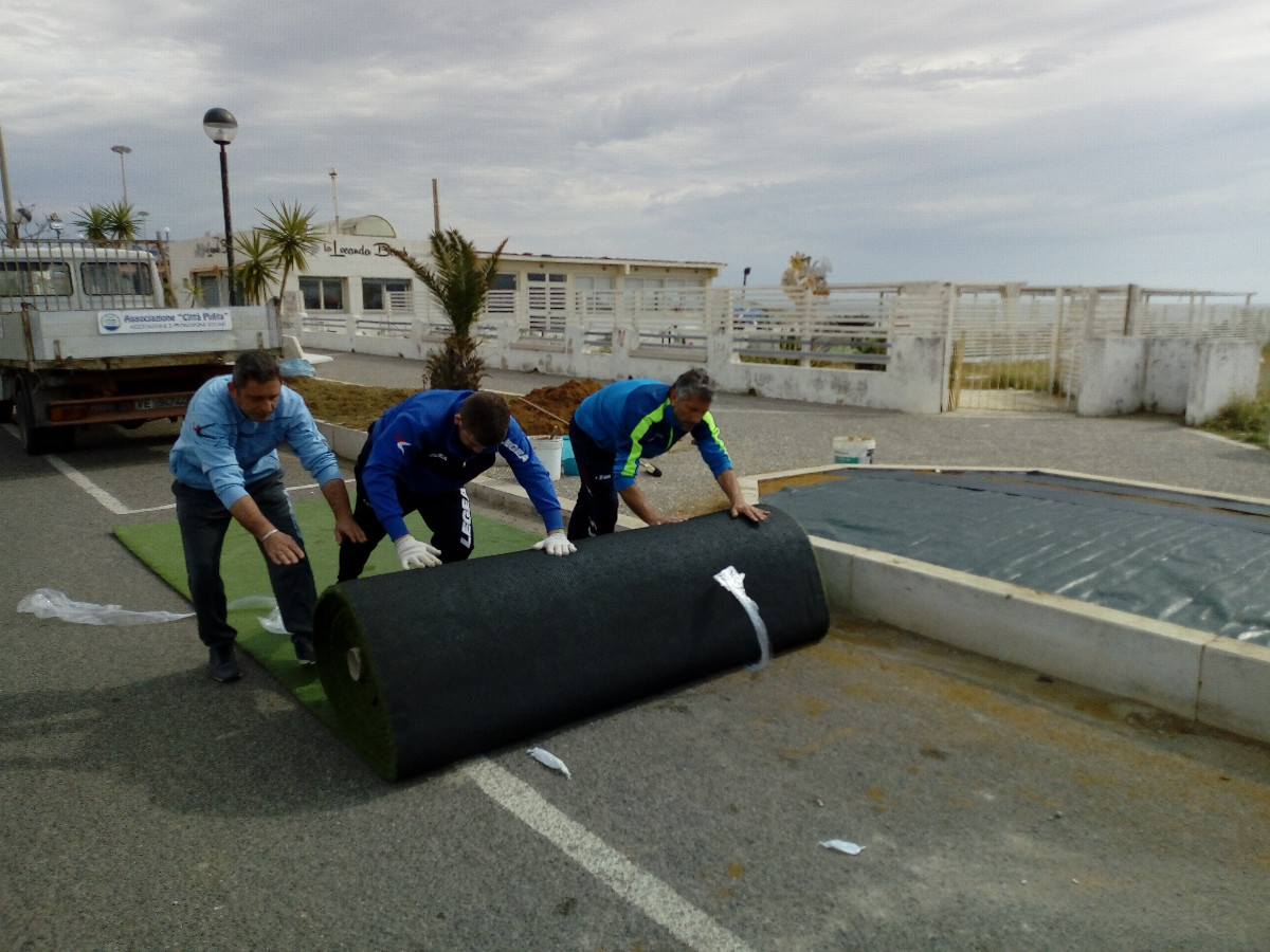 I volontari di Città Pulita hanno poi realizzato l’opera gratuitamente impegnando propri mezzi e proprie attrezzature. Gli interventi hanno riguardato l’inserimento di un manto erboso sintetico e di nuove piante della specie Castillemon Citrinus, comunemente detta scovolino, pianta resistente alla salsedine.