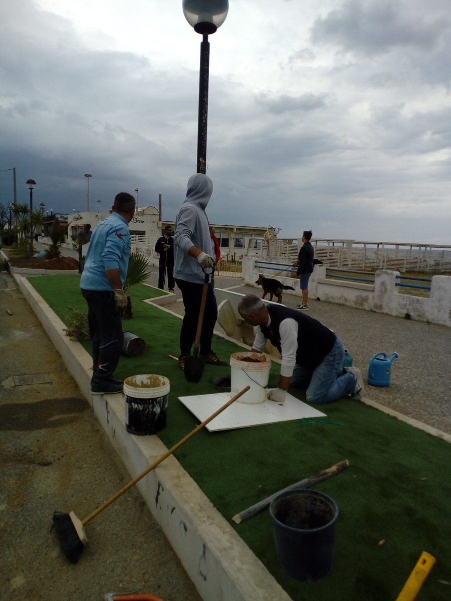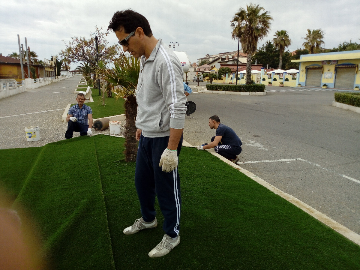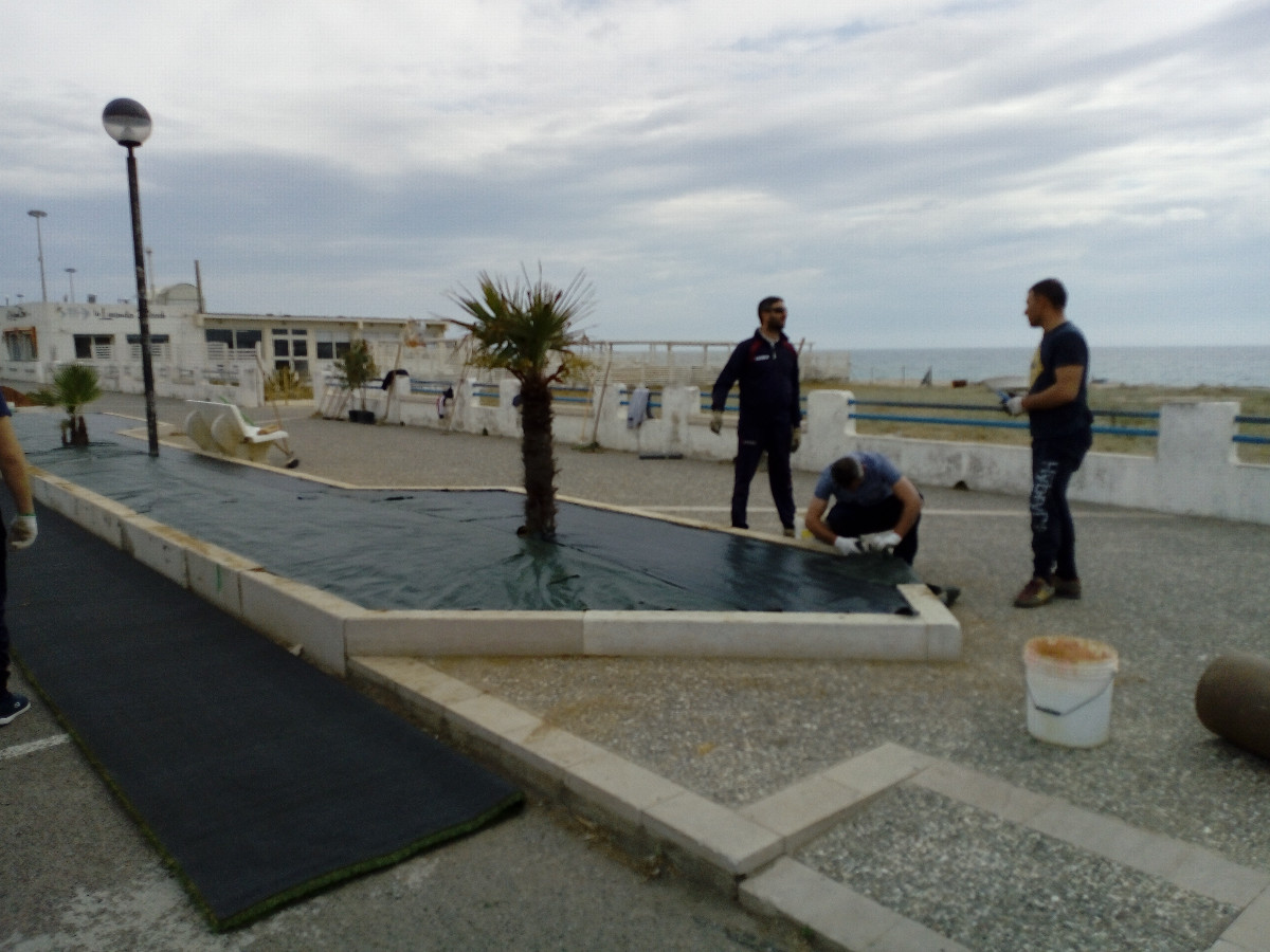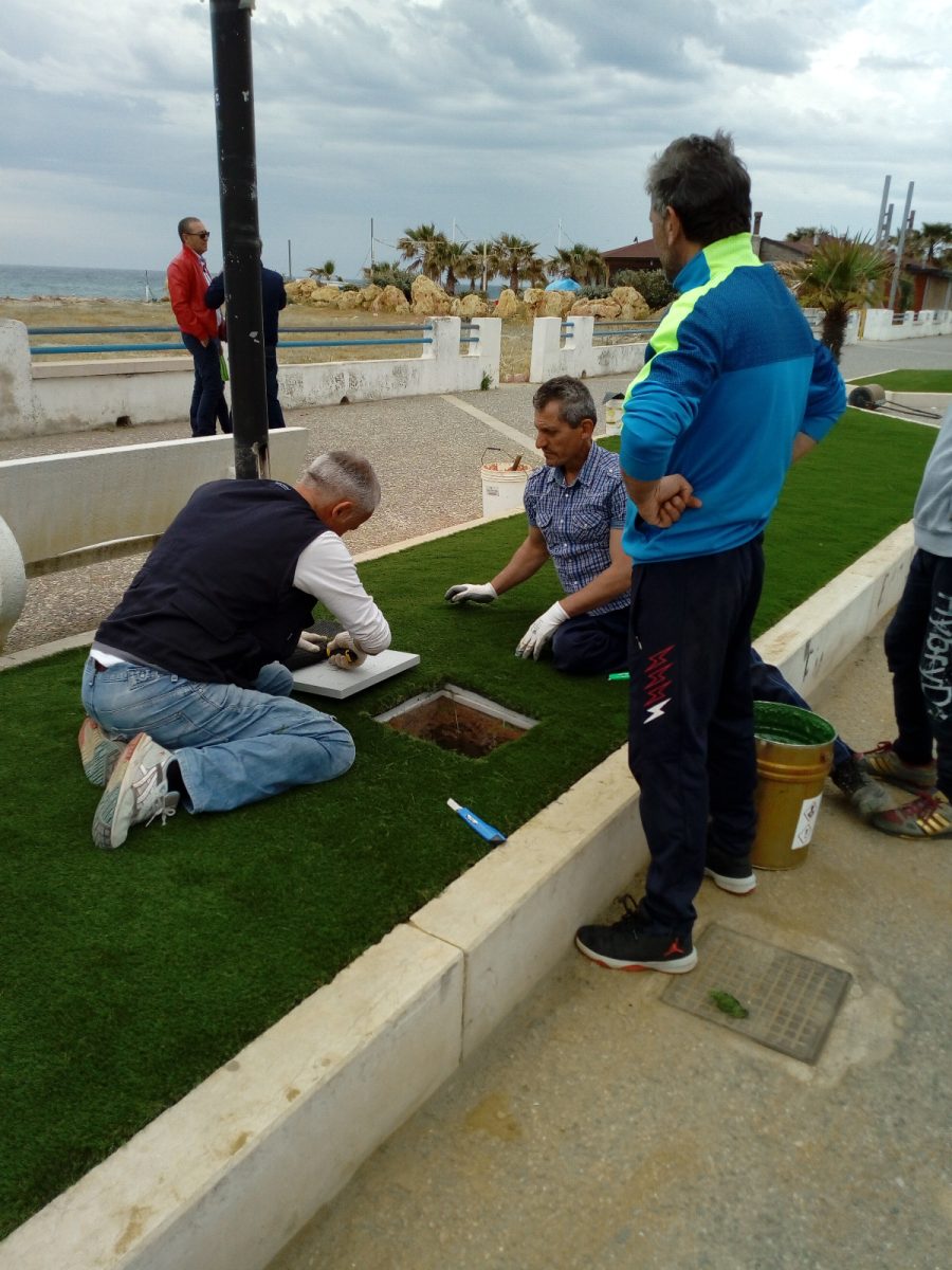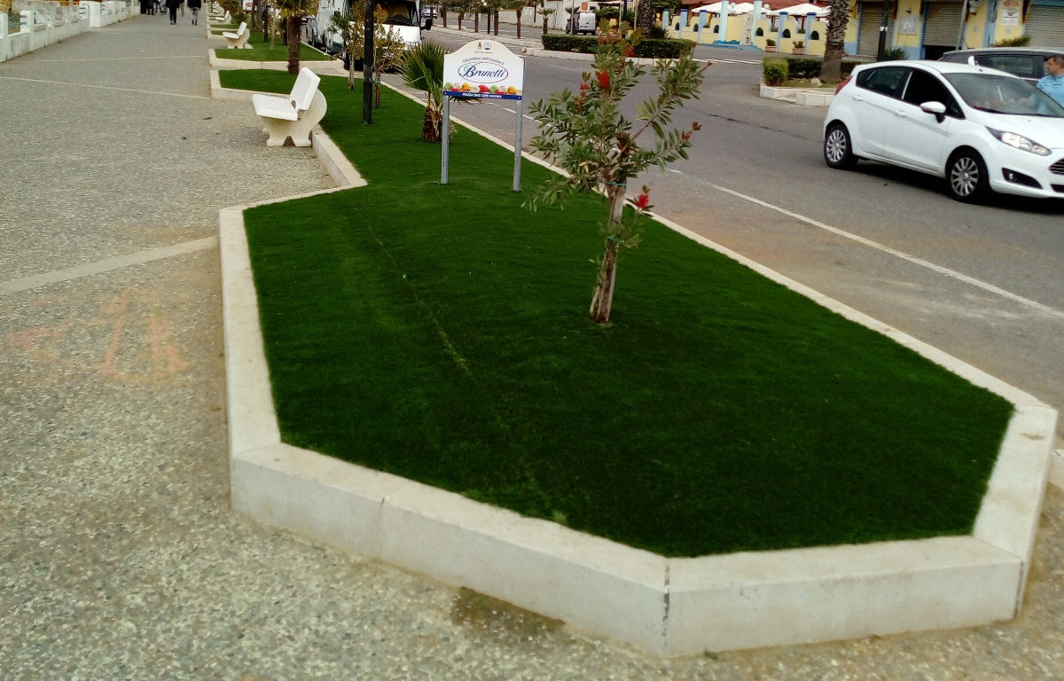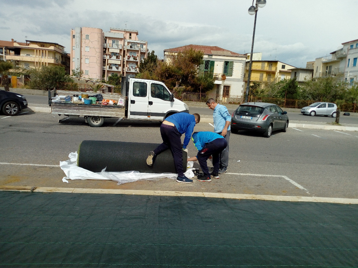 I volontari di Città Pulita hanno poi realizzato l’opera gratuitamente impegnando propri mezzi e proprie attrezzature. Gli interventi hanno riguardato l’inserimento di un manto erboso sintetico e di nuove piante della specie Castillemon Citrinus, comunemente detta scovolino, pianta resistente alla salsedine.
