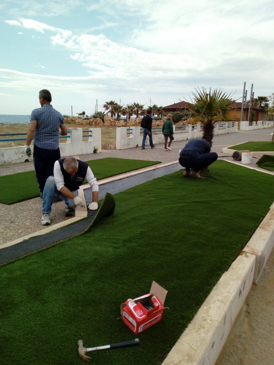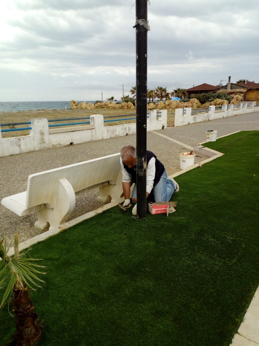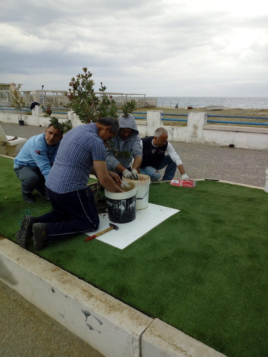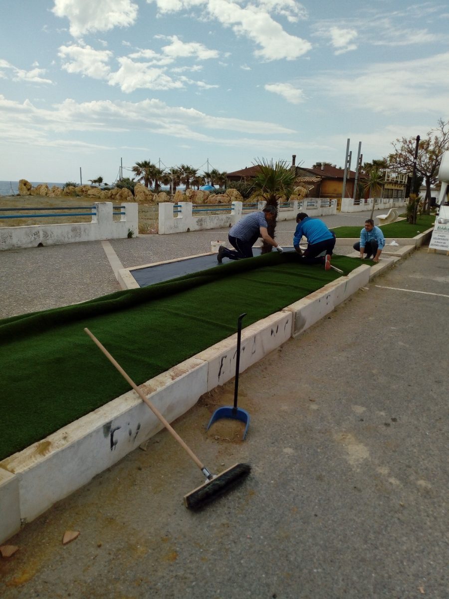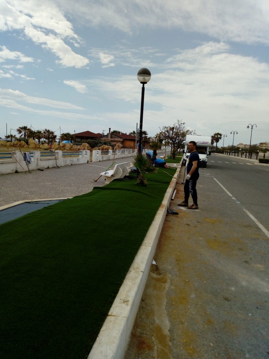 I volontari di Città Pulita hanno poi realizzato l’opera gratuitamente impegnando propri mezzi e proprie attrezzature. Gli interventi hanno riguardato l’inserimento di un manto erboso sintetico e di nuove piante della specie Castillemon Citrinus, comunemente detta scovolino, pianta resistente alla salsedine.