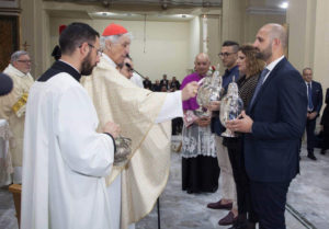 Nella Basilica Cattedrale di Crotone, alla presenza di S. Ecc.za Mons. Domenico Graziani Vescovo di Crotone, del Clero della Diocesi e tutte le massime autorità, il Cardinale Edoardo Menichelli ha presieduto la Santa Messa Pontificale durante la quale è stata benedetta l’Effige della Madonna di Częstochowa, donata l’anno scorso alla Chiesa crotonese dai Padri Paolini di Jasna Gora a sugello del gemellaggio tra il Santuario della Madonna di Capocolonna e quella polacca. La consegna della preziosa Icona è avvenuta un anno fa per mano dell’Arcivescovo Metropolita di Czestochowa Mons. Depo Waclaw nel Santuario di Jasna Gòra al maestro orafo Michele Affidato.
