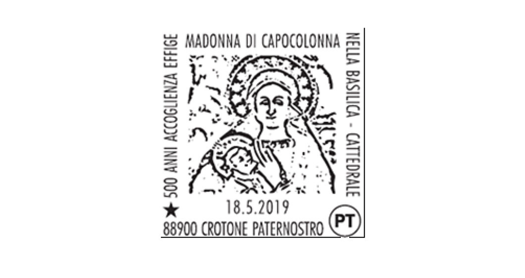 In occasione dei festeggiamenti in onore della Madonna di Capocolonna, in programma a Crotone il 18 e 19 maggio, Poste Italiane attiverà un annullo filatelico recante la dicitura “Madonna di Capocolonna – 500 anni Accoglienza effige nella Basilica Cattedrale – 18.5.2019 – 88900 Crotone Paternostro”.