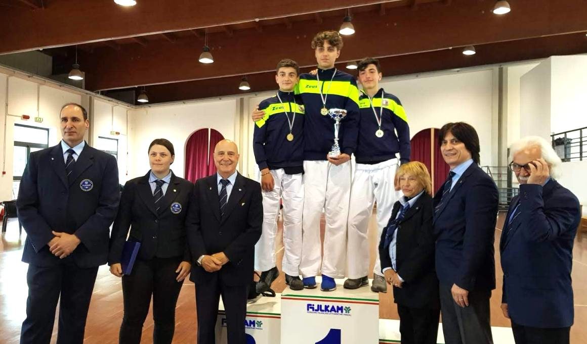 La gara, patrocinata dal comitato regionale Fijlkam Calabria, ha visto la partecipazione di numerosi atleti provenienti dalle diverse società della regione. L’ASD Martial Kroton Ryu ha partecipato a questo evento conquistando 3 medaglie d’oro e il trofeo del 3° posto nella classifica assoluta delle società. Gli Atleti artefici di questi risultati sono stati nella classe cadetti maschile: Piero Riga 1° classificato nella categoria di peso kg 78; Silvio Ioppoli 1° classificato kg 52 e Roberto Ruggiero 1° classificato kg 47. Tre medaglie d’oro che per i tre Crotonesi rappresentano il pass per le finali nazionali in programma dal 7 al 8 maggio al PalaPellicone di Ostia Lido- RM. Un ottimo risultato, commenta il Maestro Bellino, che gratifica l’impegno dei nostri karateka. Conclude il Maestro un grazie particolare ai genitori che ci hanno sostenuto in questa importante giornata sportiva.