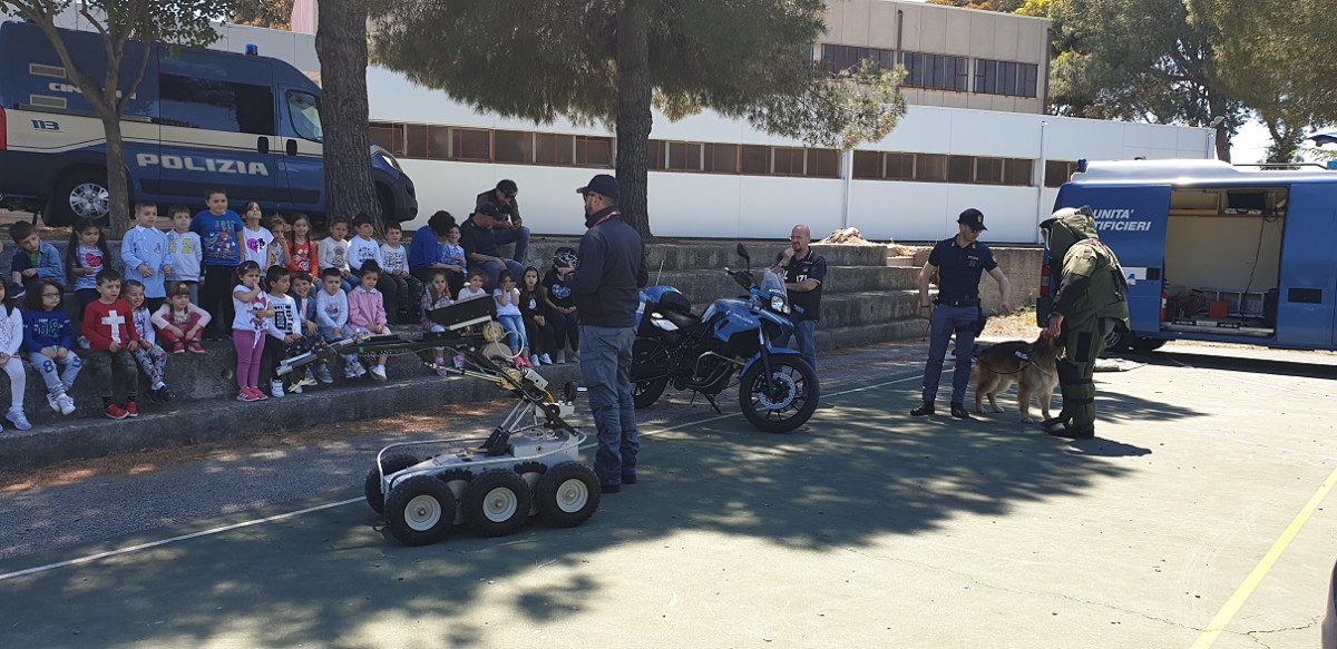 Nella mattinata odierna personale della Questura di Crotone, della Divisione Anticrimine – Ufficio Minori e Polizia Scientifica, motociclisti dell’U.P.G.S.P., unitamente alla Squadra Cinofili della Questura di Vibo Valentia ed Artificieri della Questura di Catanzaro, si sono recati presso l’Istituto Comprensivo “Alcmeone” – plesso San Francesco dove, nei giardini antistanti l’istituto, hanno organizzato una manifestazione tesa a far conoscere le attività della Polizia di Stato e dei suoi Reparti Speciali ai bambini di 4 e 5 anni della scuola dell’infanzia.
