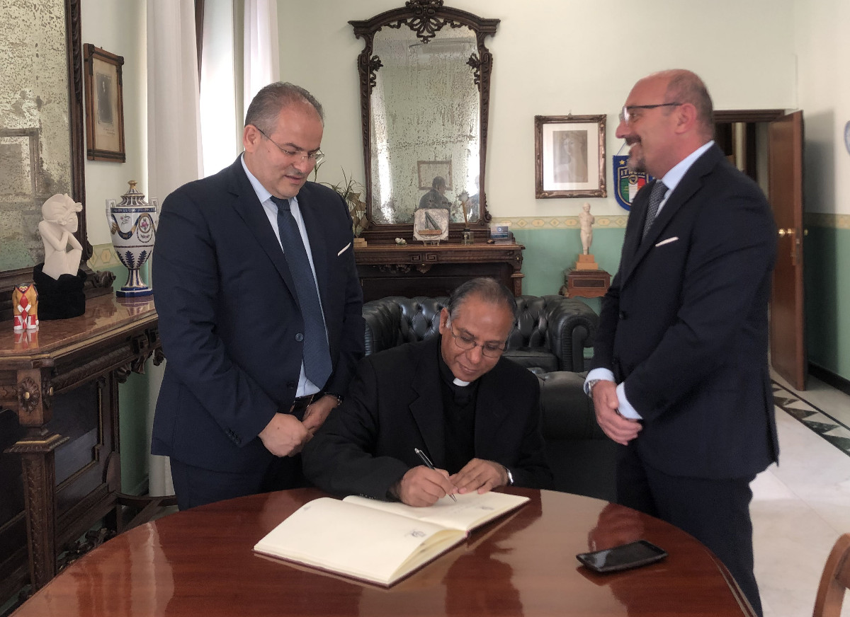 Il libro infatti affronta il tema della salvezza divina dei non cristiani attraverso lo studio dei Padri conciliari grazie alle ricerche effettuate su diversi documenti. Nel corso della presentazione Padre Abraham Kavalakatt ha donato ad Affidato, al Sindaco, a Don Parisi e Mons. Limina un particolare mantello indiano, un gesto che nella tradizione indiana è segno di stima e amicizia e che rimarrà per sempre a suggello di questo incontro.