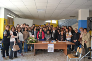 Si è così creato un clima di forte emotività ulteriormente alimentato dall’intervento dell’autore, Mario Donato Cosco, che ha puntualizzato profili personali e artistici della poetessa dei navigli. Nel libro edito da Ursini nel mese di dicembre e già alla seconda edizione, Cosco ha assimilato Alda Merini ad un poliedro di cui ogni singola faccia è una stilla della sua esistenza, senza trascurare, poi, la passione della poetessa per la vita, nonostante tutto. Si è, poi, soffermato sulla visione meriniana della poesia e del poeta. La prima sentita, fra l’altro, come «la vita che hai dentro», il poeta definito «l’uomo isola che colma lo spazio tra sogno e verità». Dopo aver rimarcato che la Merini stessa ha dichiarato: «sono la poetessa della vita» e di scrivere «in versi il mio inno alla vita», ha invitato gli studenti ad onorare sempre la vita, con la mente e con il cuore, di non vergognarsi mai delle proprie emozioni. Ha concluso rivolgendo loro l’invito a scrivere il loro futuro come i versi di una poesia della Merini. Gli studenti, quindi, sono stati protagonisti di una lettura a più voci di poesie selezionate di Alda Merini, con accompagnamento di sottofondo musicale, alternate all’esecuzione di brani musicali adattati dagli alunni da quelli dedicati alla poetessa sul piano nazionale. La Dirigente scolastica, nel saluto finale, visibilmente emozionata, ha concluso assimilando l’evento ad una poesia di Alda Merini.