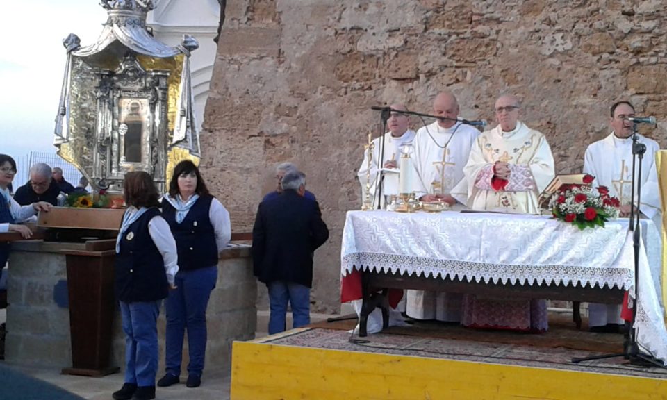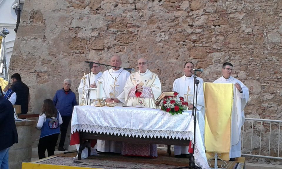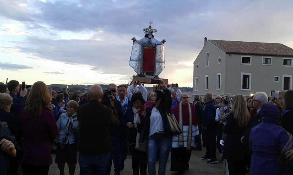 Ancora una volta, dopo cinquecento anni, il popolo di Maria si è ritrovato tra la suggestiva e intrigante location, tra “cielo, mare e terra” che è il promontorio lacinio da dove è iniziato il grande amore, l’intenso abbraccio di fede dei Crotonesi verso la “sua” Mamma bruna di Capocolonna. Si è ritrovato un intero popolo per rievocare, giugno 1519, il 5° centenario del ritrovamento della sacra Tela della Vergine. Di ciò ce ne riferisce il Canonico Giovanni Cola Basoino che nel 1598 in un suo scritto riferisce che la sacra Icona fino al 1519 era venerata in un sacello nella chiesetta di Capo Nao. E proprio in quell’anno durante una delle tantissime scorrerie verso le coste calabresi, i Saraceni, come scrive lo stesso Basoino: “ vista la meravigliosa bellezza di Lei, domandarono a certi schiavi cristiani che figura era quella, i quali avendo loro narrato che quella era l’immagine della Regina de’ Cieli Madre di Cristo salvatore e Signora di tutto, vennero in tanta rabbia e furore che…quella presero e portarono con gran tumulto…per bruciarla. Ed acceso un grandissimo fuoco… detta gloriosissima Immagine non si bruggiò né la poterono in alcun modo offendere, ma restò intatta immacolata e bella così come pria era…il che avendo l’infedele Turco visto e riconosciuto che non poteva bruciarla si risolse seco portarsela…e per volontà divina la galea dove non era l’immagine andava innanzi a vela piena e l’altra che la ritenea di sopra non poteva né a vela né a remi spingersi in modo veruno e partirsi da detto luogo…Ed avendo tardato per più di un’ora e vedendo che non poteano spingersi né passare oltre, riconoscendo che era perché avevano sopra detta santa Immagine, quella sbalzarono a mare e la detta galea se n’andò come l’altra.” Così la sacra Icona della Vergine, dopo qualche giorno fu ritrovata da un tal Agazio Lo Morello sulla spiaggia all’altezza dell’Irto, “verso li Canalicchi” e se la portò, nascondendosela dentro una cassa, a casa a Crotone. Successivamente il Lo Morello, in seguito a grave malattia, confessò ad un francescano dell’Ordine dei Minimi il suo segreto e quindi la tela bruciacchiata della Madonna fu portata nel Convento di Gesù e Maria nella zona dell’odierna Acquabona e successivamente portata in Cattedrale. Così a novembre dello stesso 1519, dopo grave siccità, il vescovo Antonio Lucifero volle portare la Madonna alla sua originaria sede. “La notte istessa si ebbe la grazia della pioggia…per tre notti…per il che sempre si aumentava a tutti la devozione, così anco crescevano tuttavia i miracoli di essa.”