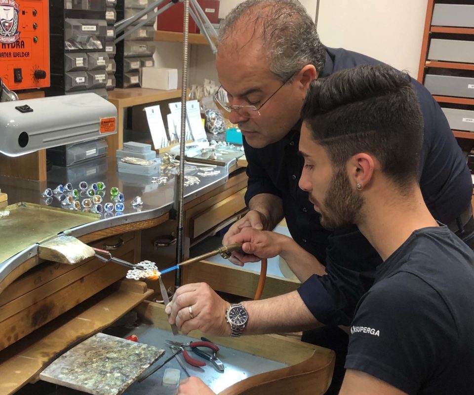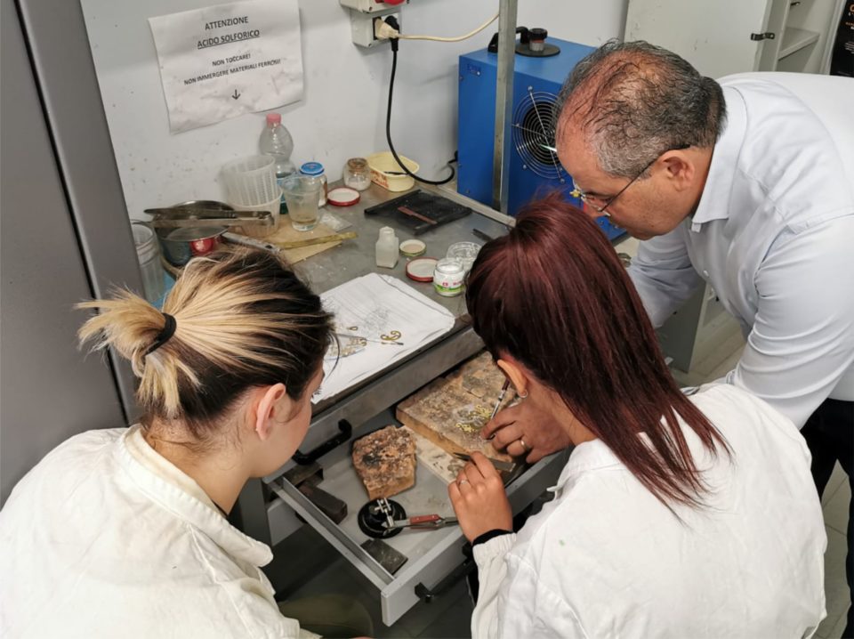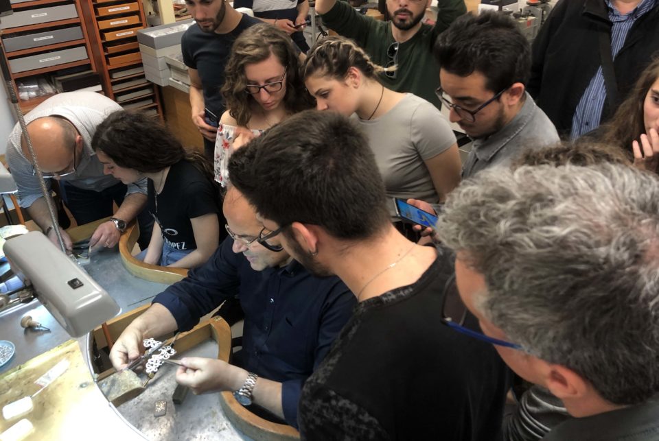 Un gioiello che rimarrà il simbolo di un progetto coinvolgente, che ha visto lavorare insieme il maestro orafo Michele Affidato e i giovani alunni del Liceo Artistico “A. Alfano” di Castrovillari. L’orafo ha seguito le classi di oreficeria e metalli nel progetto “Alternanza Scuola-Lavoro”, recandosi più volte nell’istituto e accogliendo nel proprio laboratorio per la giornata finale gli alunni, i professori Franco Pellicano, Paolo Venturini e Caligiuri Patrizia, l’assistente Maria Grazia Mortati, e il dirigente scolastico dell’Istituto Elisabetta Cataldi. Quello che si è tenuto a Crotone è stato l’appuntamento finale di un progetto che il Maestro ha seguito in maniera totalmente gratuita e con lo scopo di incuriosire e far appassionare le nuove generazioni ad un’arte antica e che conserva lo stesso e identico fascino nei secoli. I ragazzi hanno avuto la possibilità, durante il loro percorso, di proporre al maestro Affidato qualche gioiello da realizzare e successivamente è iniziata la creazione dei prototipi all’interno dell’istituto, grazie all’assistenza dei docenti che, così come gli studenti, si sono subito mostrati entusiasti per questa esperienza dall’alto valore formativo. La sintesi del progetto è la realizzazione, interamente fatta a mano, di un gioiello di cui i ragazzi sono molto orgogliosi, non tanto per il valore artistico quanto per come si è sviluppato un cammino nel corso del quale sono state illustrate tutte le fasi della lavorazione, dalla progettazione alle rifiniture finali. “Il sapere è un qualcosa che deve essere tramandato – commenta Michele Affidato – per chi come me ha avuto la fortuna di apprendere le antiche tecniche di lavorazione dei metalli, è un dovere mettere a disposizione dei ragazzi le proprie conoscenze nell’arte orafa. E’ stato un progetto davvero entusiasmante, l’energia dei giovani ti coinvolge e quando capisci che l’interesse da parte loro è reale tutto diventa più facile e i risultati sono straordinari”.