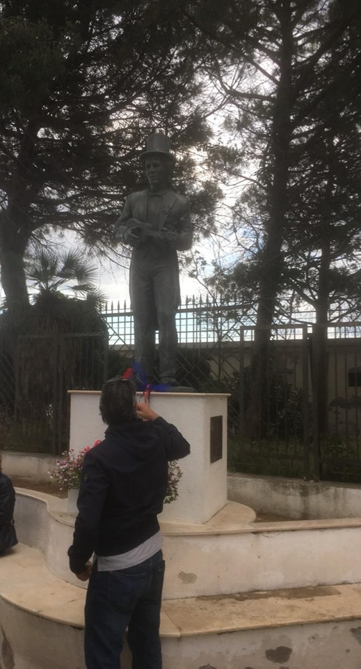 Poi l’omaggio presso la statua che ricorda il cantautore.