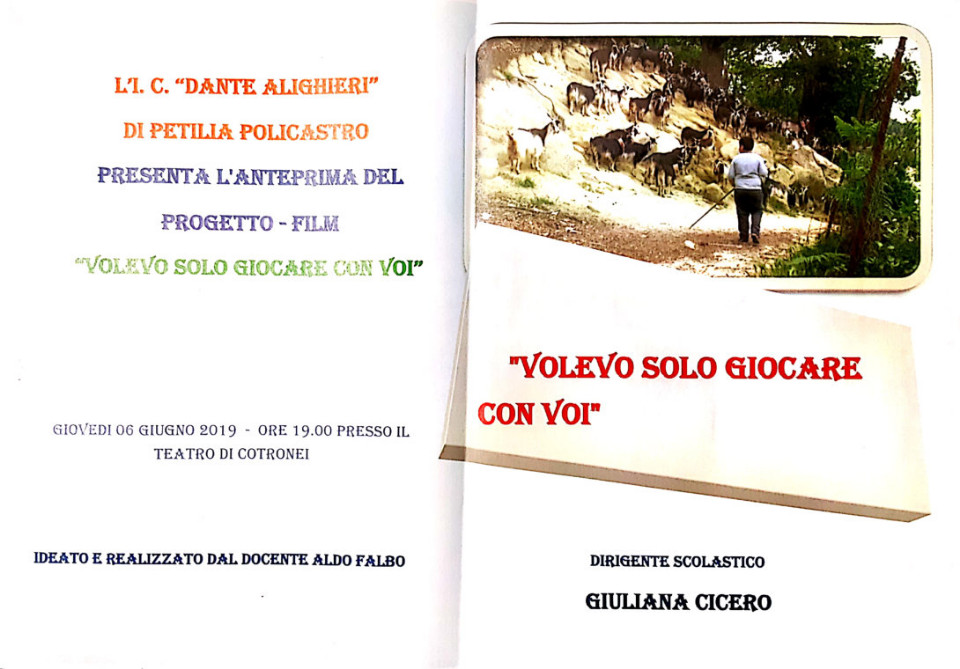 L’ISTITUTO COMPRENSIVO “DANTE ALIGHIERI” , diretto dal Dirigente scolastico Giuliana Cicero, ha regalato questa esperienza mozzafiato. Il regista, ideatore e realizzatore del film, il docente Aldo Falbo ha creato dal nulla, da nessun artefatto e senza spendere un euro, con una modestissima telecamera un vero capolavoro.