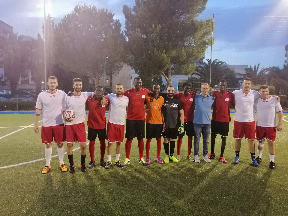 Torneo di calcio a cinque organizzato dai lavoratori della Abramo Customer Care che ogni anno vogliono ricordare un collega, un amico che non c’è più e che tanto ha fatto per l’azienda. Quest’anno l’organizzazione ha pensato ad una novità molto particolare, ovvero invitare due squadre esterne, composte da ragazzi ospiti nei vari Sprar di Crotone. Squadre composte da ragazzi di varie nazionalità, allenate da Domenico Rocca che da anni li segue con pazienza e passione. Il torneo, che si è svolto nei nuovi campetti della parrocchia di San Paolo, è stato strutturato da un girone da quattro e uno da tre, le prime due classificate dei gironi eliminatori, ovvero Ellemme e New Team, sono andati direttamente in semifinale, mentre Red Sprar, Solo Bellies, Out Bound e Vecchie Glorie e Gladiatori hanno partecipato ai playoff. Nulla da fare invece per la squadra Yellow Sprar, eliminata nel girone.