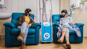 “Mentre la persona fa la chemioterapia indossa la cuffia che, tramite il raffreddamento della cute, previene la caduta dei capelli. Apparecchiature come queste vengono considerate una sorta di lusso, visto il costo molto elevato, ed è qui che l’Associazione Vivere Sorridendo è intervenuta: integrandosi alla sanità pubblica, fornendo un supporto per migliorare la qualità di vita e di cura dei pazienti oncologici.