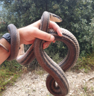 Nell’amena frazione di Fantino, alle pendici della Sila, il signor Paolo Talarico nel controllare le uova delle galline scopre che dentro il suo pollaio era entrato, non si sa come, un grosso serpente. Dopo la scoperta e bastato poco per capire a chi bisognava contattare, così la segnalazione è arrivata alla Polizia Provinciale di San Giovanni in Fiore e in breve tempo è giunto sul posto l’esperto, il poliziotto della provinciale Gianluca Congi che con la solita disinvoltura è entrato nel pollaio, salvando sia le uova del malcapitato che il rettile, un fantastico esemplare di Cervone (Elaphe quatuorlineata) lungo ben 185 centimetri. Ancora una volta la sensibilità dei cittadini, in questo caso di Paolo e Salvatore Talarico, hanno permesso a Gianluca Congi di portare a termine l’ennesimo salvataggio di un serpente (dopo vipere, biacchi, saettoni, colubri e bisce varie), il rettile è stato rilasciato immediatamente in un habitat idoneo alla specie e lontano dai pericoli. Il Cervone è il più lungo serpente italiano e tra i più lunghi d’Europa, un rettile innocuo e utilissimo all’ecosistema naturale oltre che una specie protetta per cui ne è vietata l’uccisione.