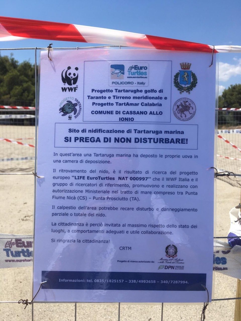 Proprio grazie alla loro ricostruzione è stato possibile individuare e mettere in sicurezza l’area della “camera di deposizione” , non senza qualche difficoltà che ha fatto sì che inizialmente parte del nido fosse fuori dalla recinzione, mettendo a rischio parte del prezioso contenuto. Sul posto si sono recati immediatamente gli operatori del Centro Recupero Tartarughe Marine WWF di Policoro. Le attività di tutela e monitoraggio dei nidi rientrano nel Progetto TartAmar finanziato dalla Regione Calabria. Il WWF rivolge un appello a turisti e frequentatori dei lidi, raccomandandosi di non disturbare eventuali tartarughe marine in avvicinamento alle spiagge, perché con tutta probabilità si tratta di femmine in procinto di intraprendere la delicata fase della deposizione, e di segnalare invece al WWF gli avvistamenti. Questo per evitare che questi rettili marini tornino in mare spaventati, rinunciando a deporre.
