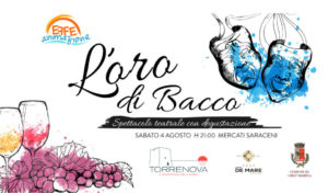 “L’Oro di Bacco” si svolgerà domenica 4 agosto 2019, nella suggestiva cornice dei Mercati Saraceni di Cirò Marina, uno spettacolo fatto di sketch, canzoni e coreografie, che saranno intervallati da degustazioni di Vino di Cirò Doc della cantina De Mare, effettuate dal sommelier professionista Silvia Di Stefano.