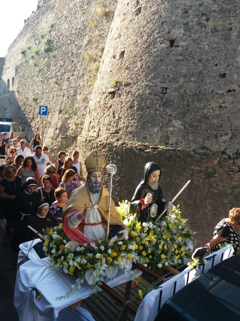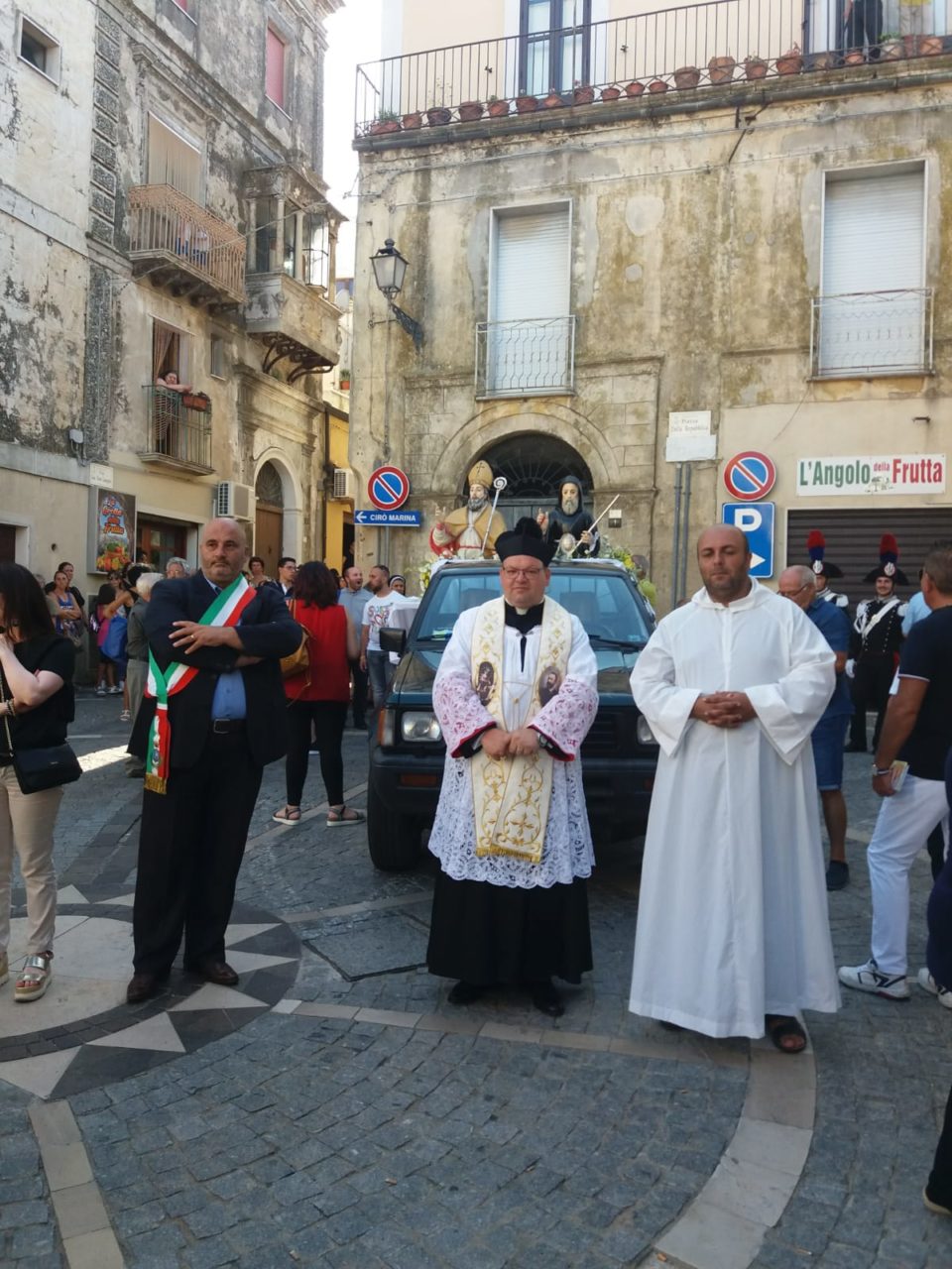 Come da 500 anni suggellato il gemellaggio storico culturale e religioso tra le due comunità: Cirò e Mammola in nome dello stesso Patrono San Nicodemo, nato nell’antica Ypsicron, odierna Cirò nel 900 e morto a Mammola nel 990. Ad accogliere il popolo di Mammola accompagnato dal loro parroco don Antonio Mazzà, il sindaco di Cirò Francesco Paletta, la vice sindaco Giovanna Stasi, l’assessore alla cultura Francesco Mussuto, l’assessore al Turismo Cataldo Scarola, dalla Pro loco guidata da Rosaria frustillo e naturalmente il nostro parroco don Matteo Giacobbe il quale, tanto ha voluto questo connubio religioso tra i due popoli. “Ti aspettavo all’uscio di casa– ha detto don Matteo nell’accogliere il parroco don Antonio e la sua comunità- per dare a voi tutti la buona accoglienza. I cittadini per accogliere il popolo mammolese ha abbellito i balconi per tutto il percorso della processione con coperte e merletti di rara fattura, e dopo il pranzo, il comitato e la parrocchia ha offerto loro una grande torta di benvenuto, gesta molto apprezzato dagli ospiti. Per impegni politici il sindaco di Mammola non era presente ma in un comunicato affidato al parroco Mazzà riferiva la sua vicinanza al popolo cirotano nella speranza di contraccambiare l’ospitalità il prossimo primo settembre durante i festeggiamenti per San Nicodemo, santo che accomuna le due comunità. Ad officiare la santa messa nella chiesa che è stata la casa natia del Santo, don Antonio Mazzà; sono onorato della sua presenza ha detto il parroco Giacobbe- io invece presiederò la messa il prossimo primo settembre a Mammola. Presente al gemellaggio anche Carlos Henrique Botura vicario di Perticaro, Pallagorio e Umbriatico. Oggi siamo ad rinnovare questo antico gemellaggio-ha detto nell’omelia don Mazzà- per condividere l’amore che ci accomuna guardando alla figura dei due Santi Patroni Nicodemo e Francesco, che ci portano al cuore di Dio Padre. Stare insieme attorno alla figura dei Santi – prosegue don Antonio- a venerare la reliquia con l’osso mascellare di San Nicodemo, affidato al popolo di Cirò dai nostri padri- vuol dire confidare nei loro segni per avvicinarci alla figura di Gesù, per migliorare la mostra spiritualità e la nostra umanità, questi devono insegnano i santi: unire non dividere. La virtù della carità è amore verso noi stessi, prosegue ancora- impariamo tutti ad essere pastore di un gregge, proprio come San Nicodemo, un monaco che si sentiva indegno, ma stava ore e ore davanti all’Eucarestia, questo era il suo sacrificio. Guardare a loro come fratelli per farci maturare nella nostra dimensione spirituale secondo le leggi che ci ha lasciato il Signore, solo lui ci da la libertà. Alla fine della cerimonia il parroco don Matteo ha donato al parroco di Mammola, al vicario di Perticaro ed al sindaco Paletta un quadro raffigurante una antica icona di San Nicodemo in abiti da monaco rinvenuta in una antica nicchia votiva murata di un palazzo antico di Cirò. Il parroco Giacobbe inoltre ha fatto sapere, che il quadro destinato al sindaco di Mammola glielo darà personalmente il prossimo primo settembre, durante lo scambio del gemellaggio, quando per tradizione, la comunità di Cirò si recherà a Mammola, per i loro festeggiamenti dedicati a San Nicodemo. Nel ringraziare e salutare la comunità cirotana per la bella accoglienza, il parrocco don Antonio Mazzà, ha detto che è stata una bella esperienza, un gemellaggio che ci lega e ci unisce come popoli, nella fede di san Nicodemo. “Nessuno ci potrà mai dividere diceva San Paolo ” ha concluso don Matteo Giacobbe- sono passati 500 anni da quando la comunità di Mammola ci ha fatto dono di questa reliquia: un osso mascellare del Santo, che oggi i due popoli insieme come fratelli, si accingono a pregare con devozione e testimonianza.