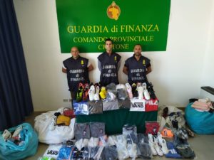 Sulla base delle risultanze emerse è scattato il “blitz” delle Fiamme Gialle, che ha visto impegnati otto unità della componente specialistica Anti Terrorismo Pronto Impiego, agli ordini del Capitano Michele Filomena, che ha consentito di individuare e sottoporre a sequestro circa 350 prodotti posti in vendita tra scarpe, borse, jeans ed occhiali da sole, riproducenti i marchi di importanti firme dell’alta moda, contraffatte e denunciare alla locale Procura della Repubblica due soggetti, per i reati di ricettazione e commercio di prodotti con segni falsi.