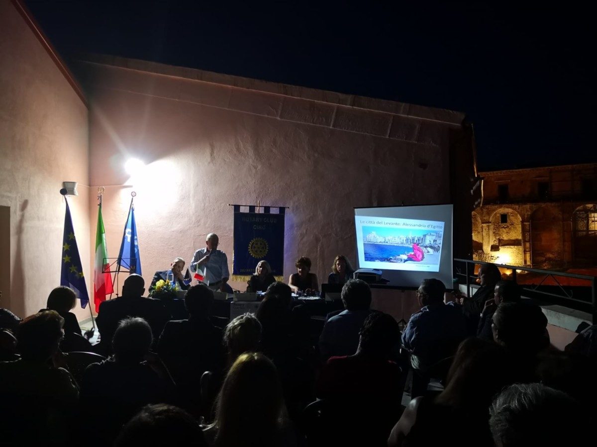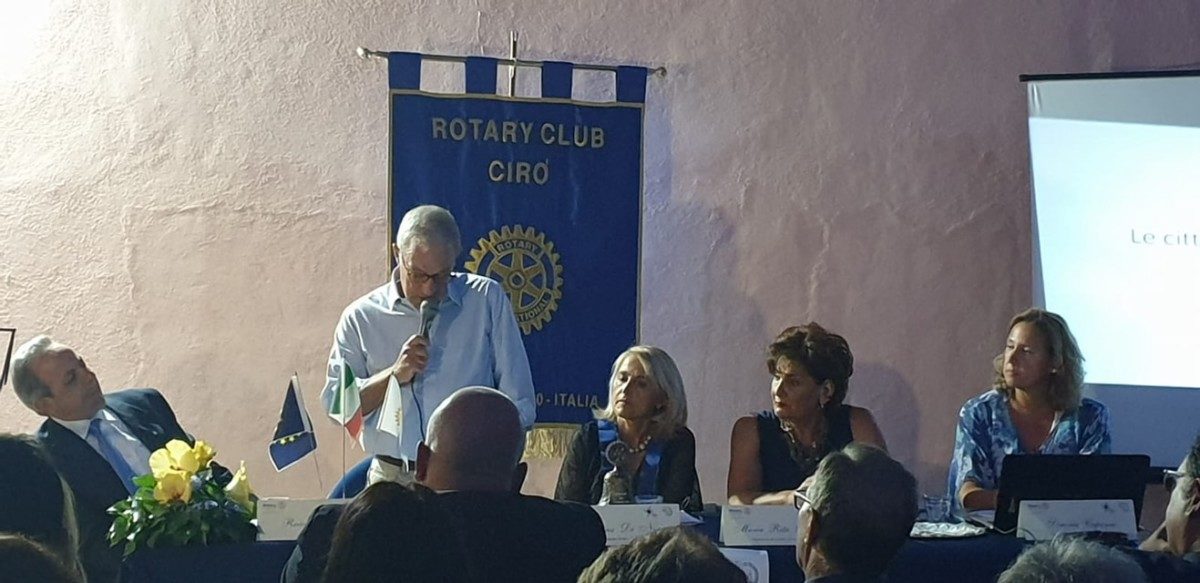 Ha introdotto la serata il Presidente del neo Club di Cirò, Giuseppina De Novara, visibilmente soddisfatta di questo esordio molto significativo, che ha richiesto non poco impegno e che ha visto la partecipazione di un pubblico numeroso e qualificato. Ha quindi salutato il tavolo presidenziale, ha ringraziato la Commissione Arte e Cultura con Presidente Simona Caparra, che ha organizzato l’evento con la collaborazione delle socie Rosa Caruso, Maria Teresa Bianco e Maria Elena Cosentini.