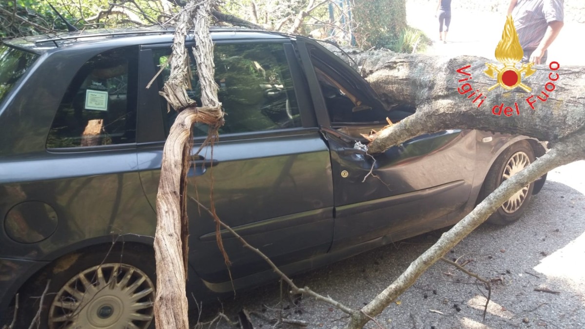 L’albero cadendo, colpiva in pieno una Fiat Stilo in transito.