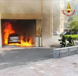 Una vettura Wolksvagen Polo era completamente avvolta dalle fiamme, nelle vicinanze della stessa tubi del gas e nella parte superiore del porticato vi erano abitazioni.