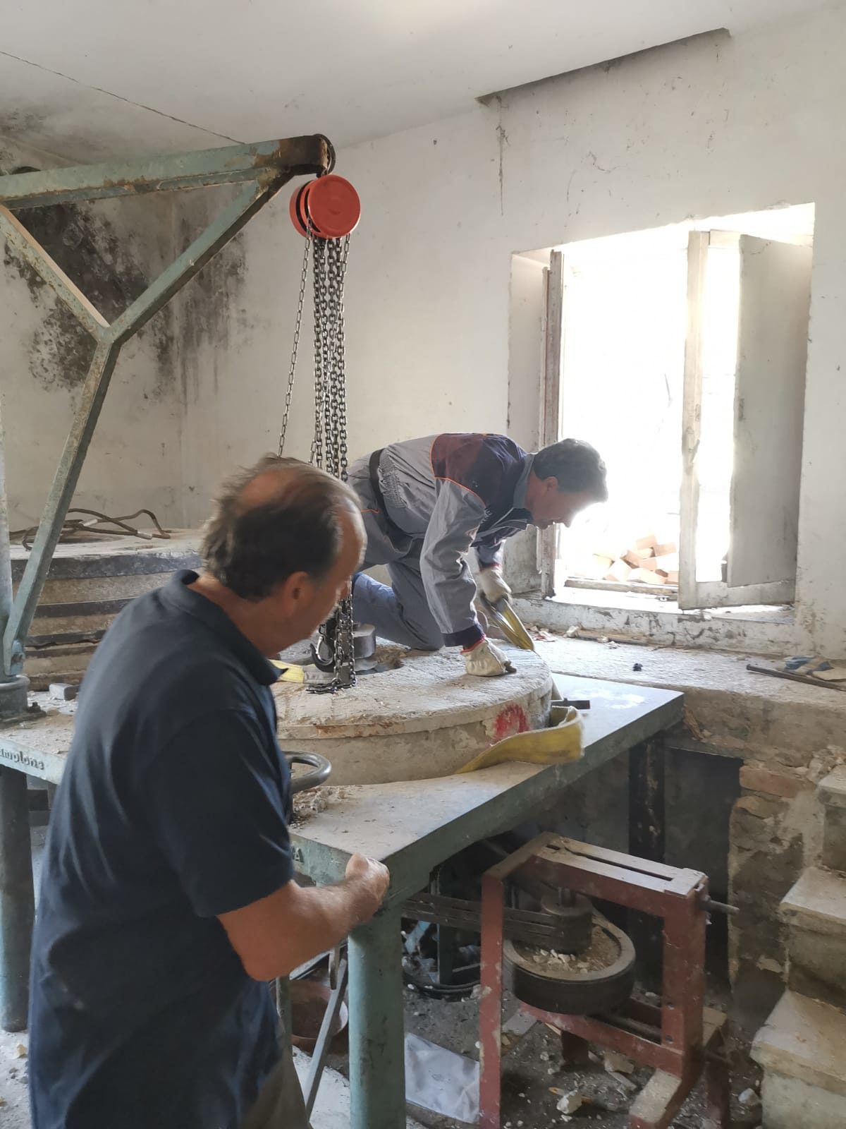Il sudore di lunghe ore di lavoro era misto alla soddisfazione: il mulino funziona ancora, è soltanto deteriorato dal peso degli anni.