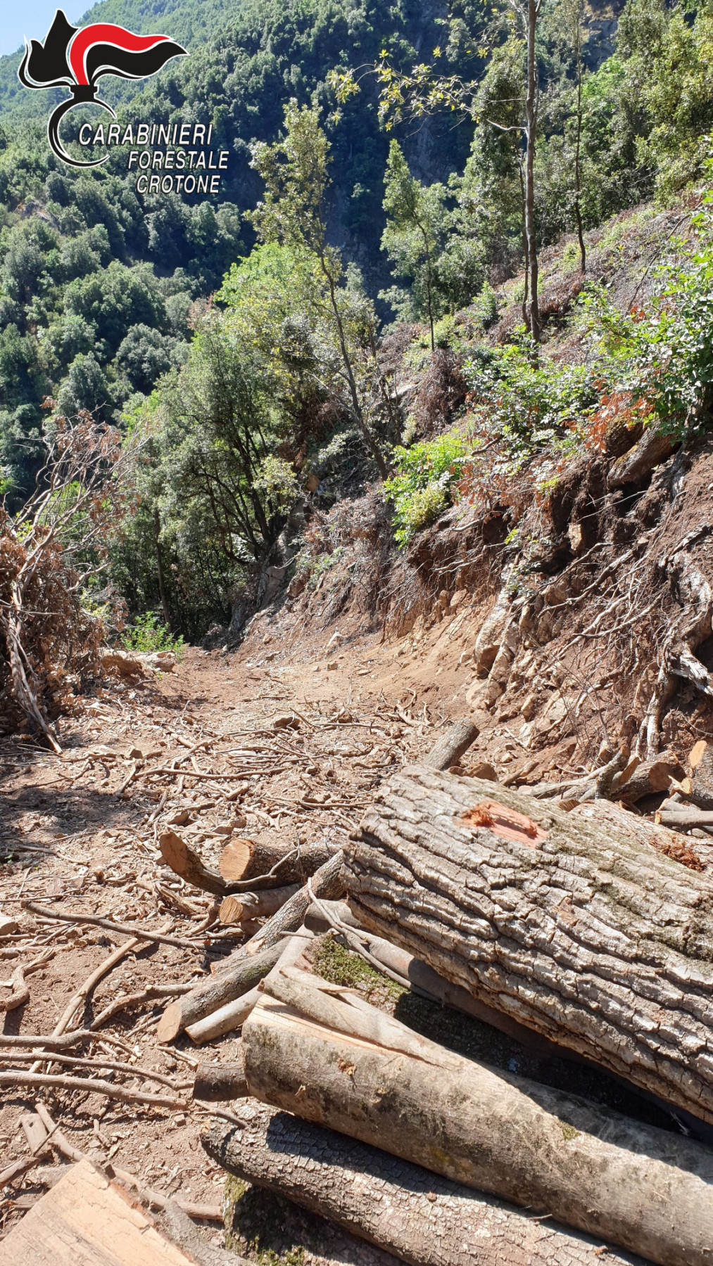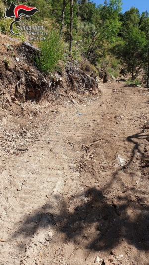 I militari della stazione CC forestale Savelli durante un controllo del territorio montano avevano notato alcuni movimenti di terra. Insospettiti avevano ampliato l’area di ricognizione scoprendo due bracci di una strada sviluppatesi all’interno di un bosco ceduo di cerro. La strada era articolata in due bracci della lunghezza complessiva di 600 m. In seguito agli accertamenti eseguiti presso l’ufficio tecnico comunale competente è emerso che l’opera era priva di qualsivoglia atto d’assenso che ne legittimasse la realizzazione.