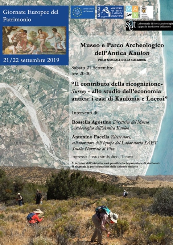 Il Museo dell’antica Kaulon aderisce alle Giornate Europee del Patrimonio promosse dal MiBAC con l’evento Il contributo della ricognizione – Survey – allo studio dell’economia antica: i casi di Kaulonía e Locroi, a cura dei Servizi Educativi.