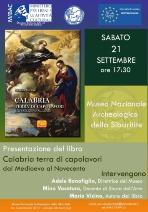 Il Museo Nazionale Archeologico della Sibaritide partecipa alle GEP 2019, promuovendo giorno 21 settembre 2019 – ore 17.30, la presentazione del volume Calabria terra di capolavori, dal medioevo al Novecento di Mario Vicino.