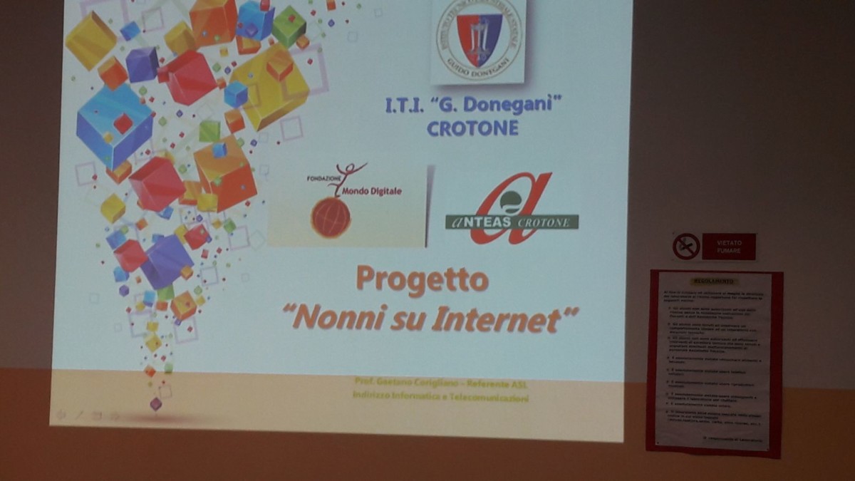 Anche per l’anno scolastico appena iniziato “ANTEAS S. PAOLO “ di Crotone apre le iscrizioni per la Terza edizione del Corso di accostamento al Computer riservato ai Nonni e alle persone anziane. Il corso si svolgerà in collaborazione con Mondo Digitale presso l’Istituto Tecnico“Donegani” della città, sito in Via Tito Minniti 21 nell’ambito del programma Alternanza Scuola-Lavoro che vede coinvolto Nonni e Nipoti per un maggiore sviluppo dell’alfabetizzazione digitale.