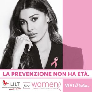 Testimonial della campagna Belen Rodriguez, il clami della campagna è “La prevenzione non ha età”, hashtag #vivilrosa.