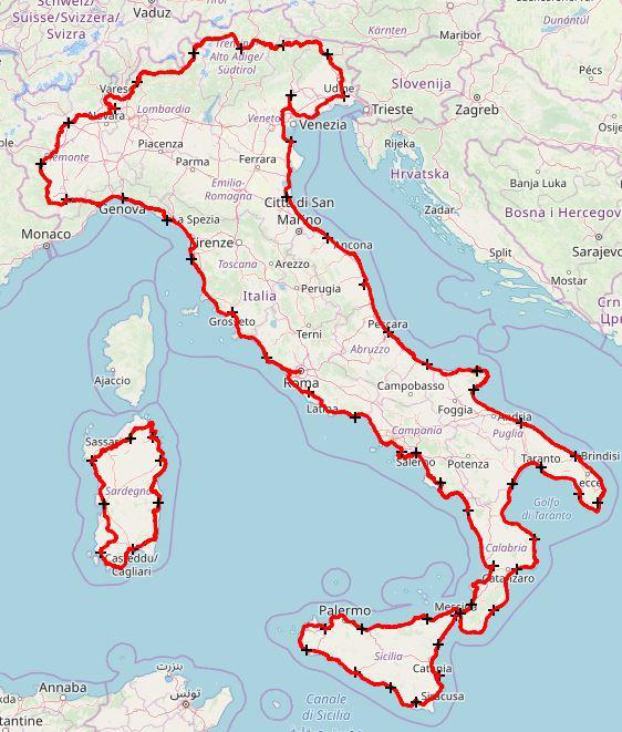 Flavio Mariotti 57 anni da poco andato in pensione, ha deciso di salutare così una lunga carriere con la divisa del corpo più amato d’Italia, lo sta facendo visitando tutte le caserme dell’intero percorso nelle quali i colleghi di tutta la nazione lo ospitano di tappa in tappa.