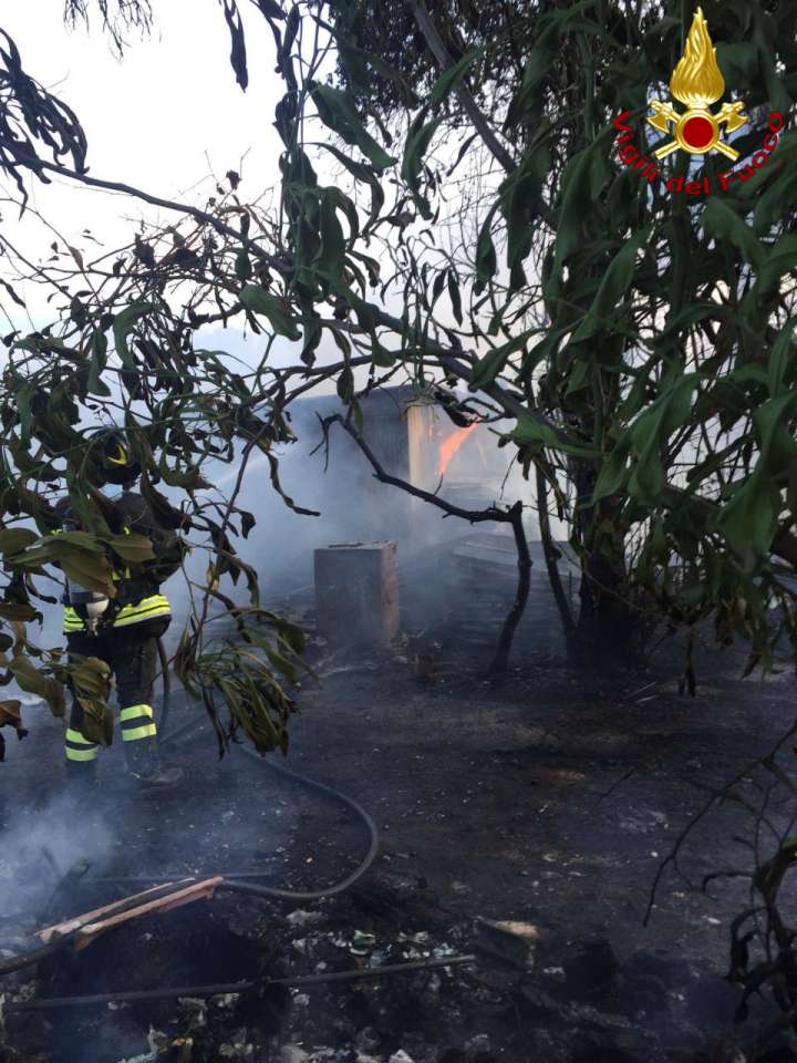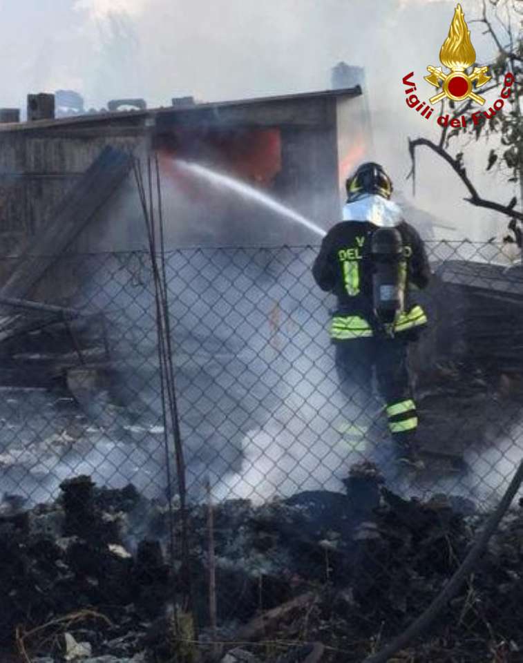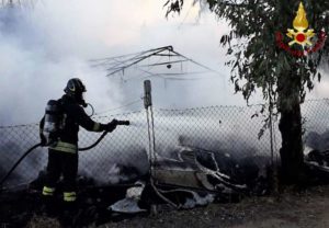 La zona interessata dalle fiamme era abbastanza vasta con roulotte abbandonate, un container e materiale vario.