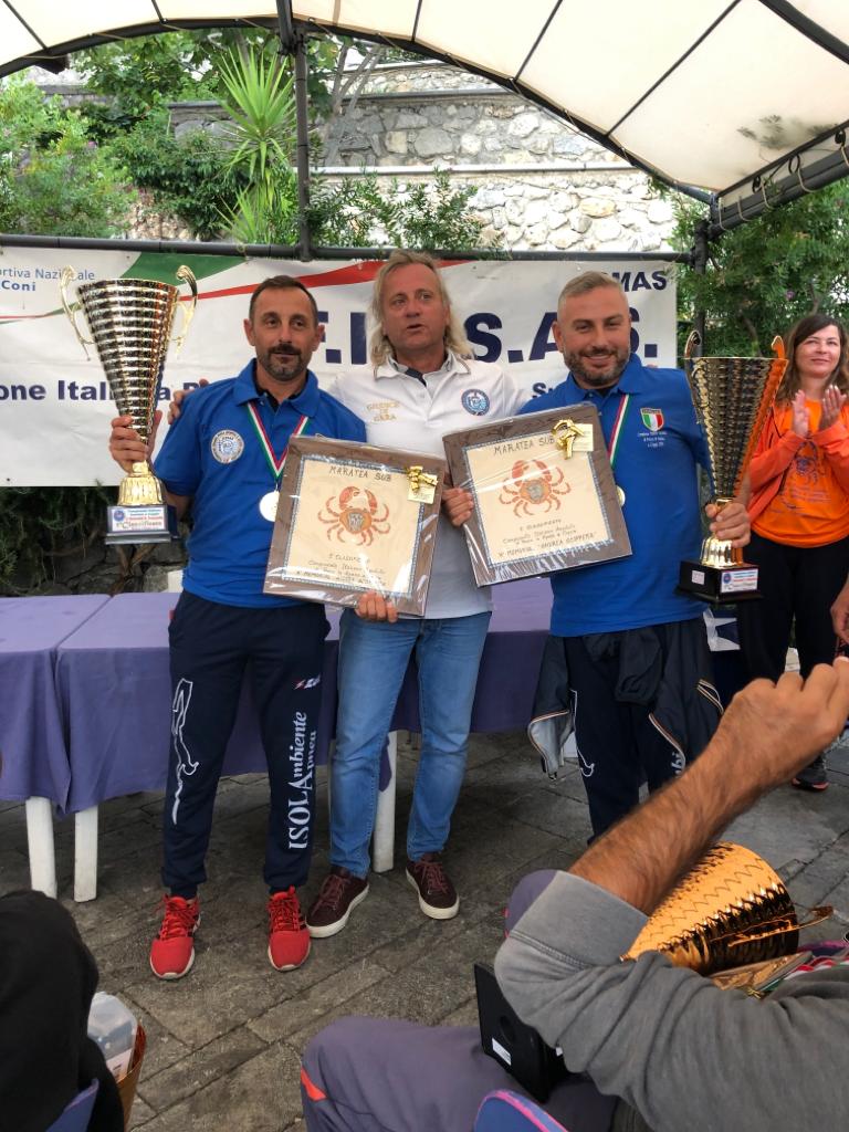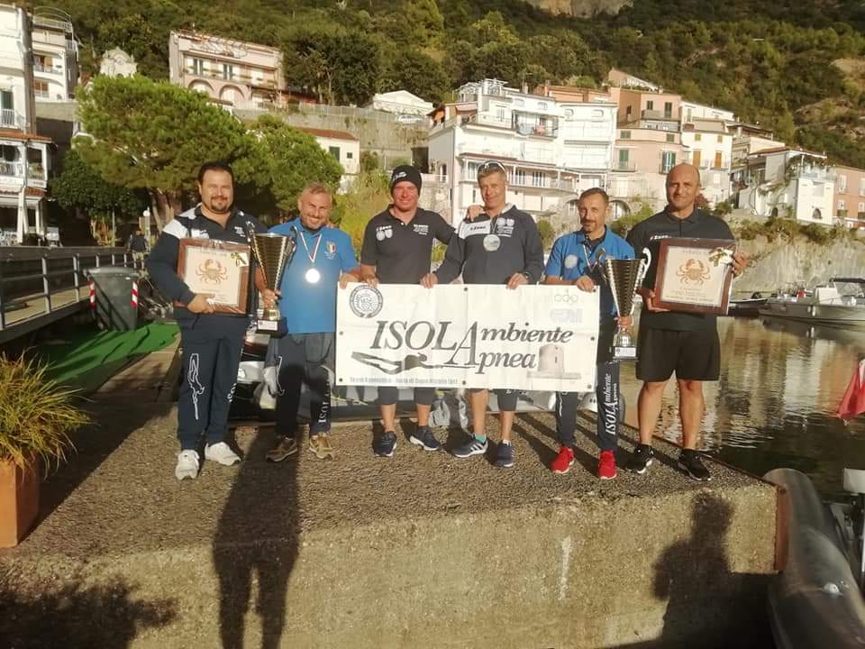 L’A.S.D. Isola Ambiente Apnea era rappresentato da ben tre coppie: Vincenzo Piscitelli e Raffaele Loprete, Giuseppe Palaia e Franco (Ciccio) Calabrese, Giuseppe Mercurio e Roberto De Santis.