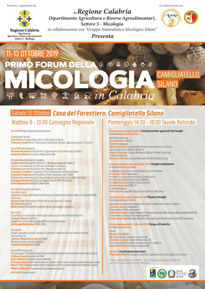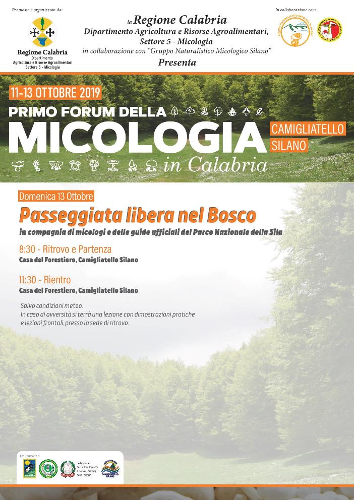 La Regione Calabria, attraverso il Dipartimento Agricoltura e Risorse Agroalimentari, Settore Micologia, in collaborazione con il Gruppo Naturalistico Micologico Silano, promuove il Primo Forum della Micologia in Calabria, che si svolgerà sabato 12 ottobre a partire dalle 9 e proseguirà per tutta la giornata, presso la Casa del Forestiero a Camigliatello Silano. L’iniziativa vedrà come ospiti esponenti delle istituzioni, tra i quali amministratori locali, rappresentanti delle organizzazioni di categoria agricole e degli ordini professionali, dell’Arsac, l’Azienda regionale per lo sviluppo dell’agricoltura calabrese, dei Parchi Nazionali calabresi, dei Gruppi di Azione Locale, professionisti del settore, esponenti del mondo accademico e tutti i gruppi micologici regionali. Il “Primo Forum della Micologia in Calabria” è un’iniziativa voluta fortemente dalla Regione Calabria, nata con l’obiettivo di divulgare pratiche e conoscenze sul mondo dei funghi e valorizzare un comparto, quello micologico, che può rappresentare un settore strategico per tutta l’economia regionale, oltre che per lo sviluppo del turismo montano.