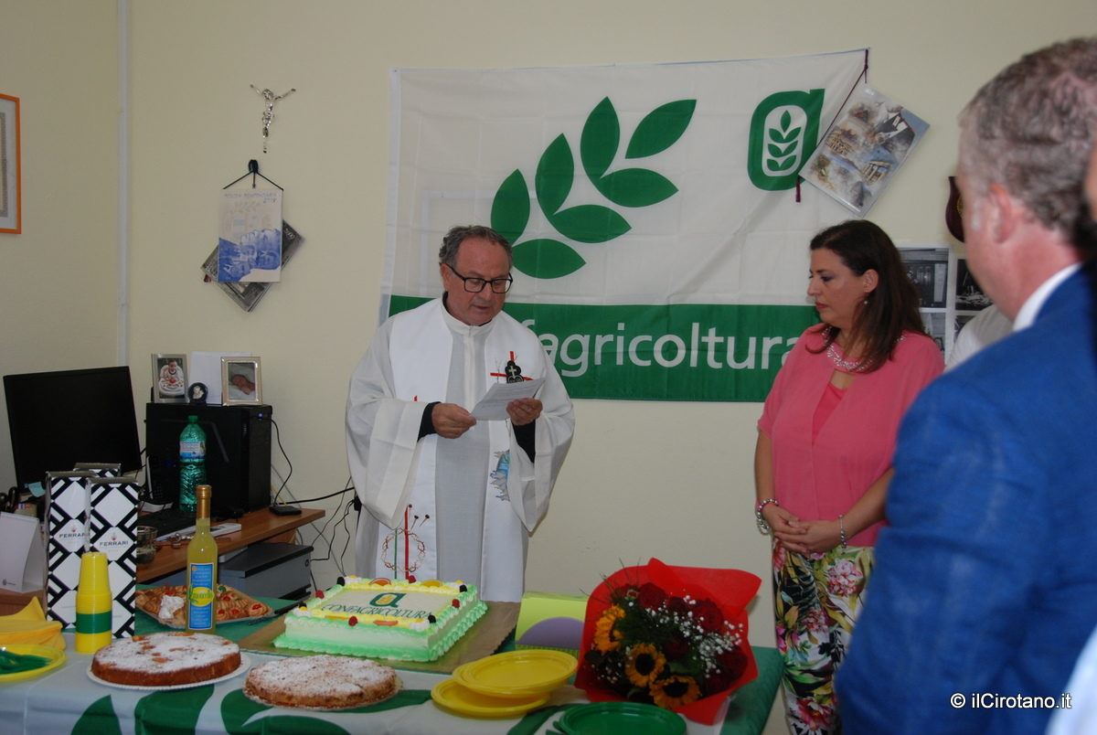 La benedizione, in una cerimonia solenne, è avvenuta nella sede territoriale di Confagricoltura di Cirò Marina, guidata dal delegato Luigi Pirito, insieme alla Dirigenza Regionale e Provinciale fino ai tesserati pensionati, uniti tutti per il sociale, seguito da un gran buffet. L’iniziativa ha sottolineato la vicinanza dell’organizzazione non solo per il settore agricolo, pilastro fondamentale, ma anche per tutte le categorie.