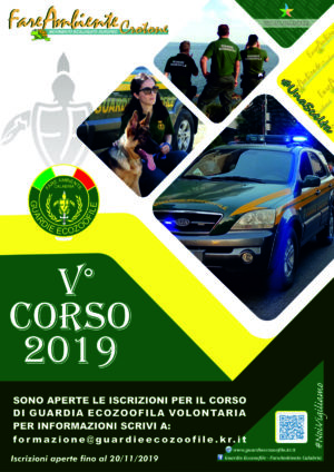 Sono aperte le iscrizioni per il V° Corso Vigilanza Ecozoofila per la formazione di base delle Guardie di FareAmbiente Crotone. Le Guardie Ecozoofile sono operatori specializzati nella vigilanza per la protezione degli animali e la tutela del patrimonio ambientale e faunistico, vengono nominate con decreto prefettizio ed esercitano le funzioni di polizia giudiziaria ed amministrativa nelle materie di competenza. Svolgono altresì funzioni di protezione civile in caso di eventi calamitosi e di sensibilizzazione ed educazione ambientale. FareAmbiente Movimento Ecologista Europeo è Associazione Nazionale riconosciuta dal Ministero dell’Ambiente e della Tutela del Territorio e del Mare e dalla Commissione Europea – Registro per la Trasparenza.