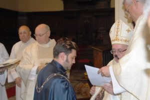 Non è mancata la presenza dell’Arcivescovo emerito nei momenti salienti del cammino confraternale , sin dalla cerimonia di vestizione e consegna dei collari in Basilica Cattedrale, il 2 maggio 2016 fino al primo riconoscimento ad honorem alle Forze dell’Ordine, attribuito all’ Arma dei Carabinieri nella persona del Comandante pro tempore il Ten.Col. Alessandro Colella, in occasione della Festa della Virgo Fidelis 2018, sempre in Basilica. Infine, come non ricordare, lo scorso 5 ottobre, nella Chiesa di San Giuseppe, l’ importante intervento arcivescovile sul ruolo della Chiesa, sull’importanza del credere e sulla nostra realtà territoriale, magistrale riflessione che ha suggellato il gemellaggio tra la Confraternita di Capocolonna e quella di San Michele Arcangelo, alla presenza, per la prima volta, del Coordinatore e Vicecoordinatore della Confederazione Nazionale della Confraternite Italiane.
