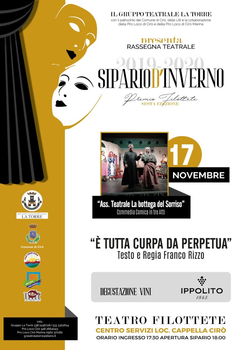 Prende il via la VI^ Rassegna “Sipario d’inverno – Premio Filottete” con la commedia brillante “È tutta curpa da perpetua” regia di Francesco Rizzo e portata in scena dall’Associazione Teatrale La Bottega del Sorriso di Cittanova (Rc).