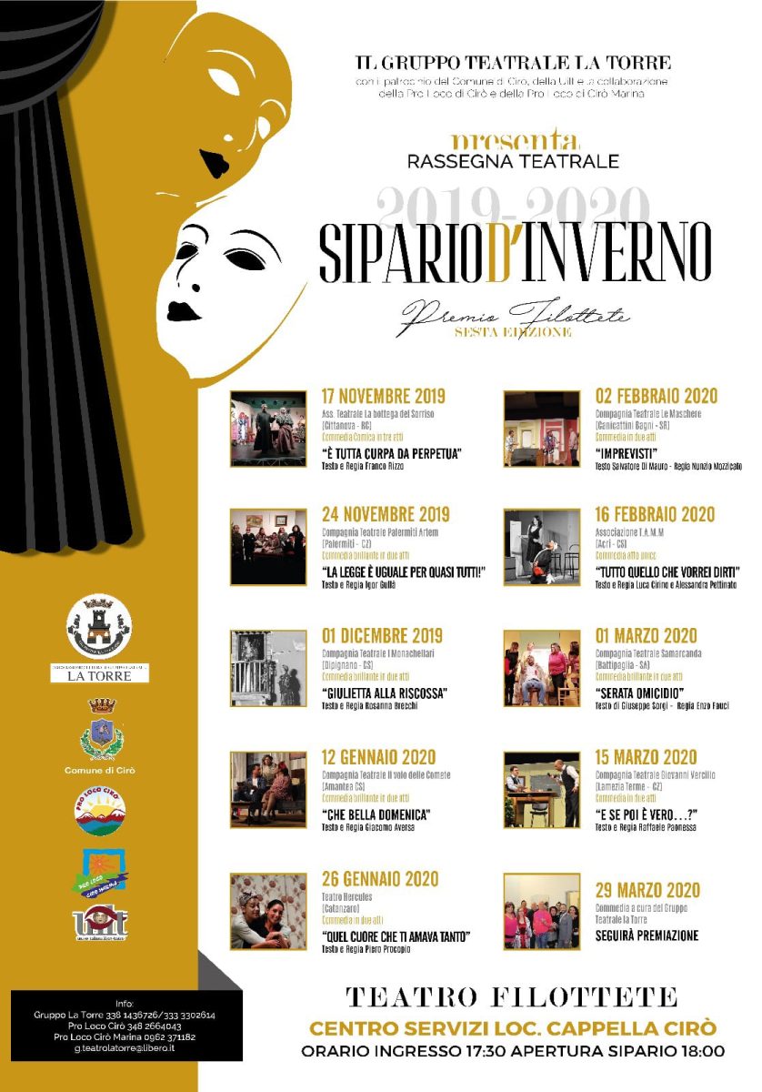 Domenica 17 novembre, riparte la Rassegna Teatrale più attesa dell’anno: “Sipario d’Inverno – Premio Filottete” giunta ormai alla sua sesta edizione