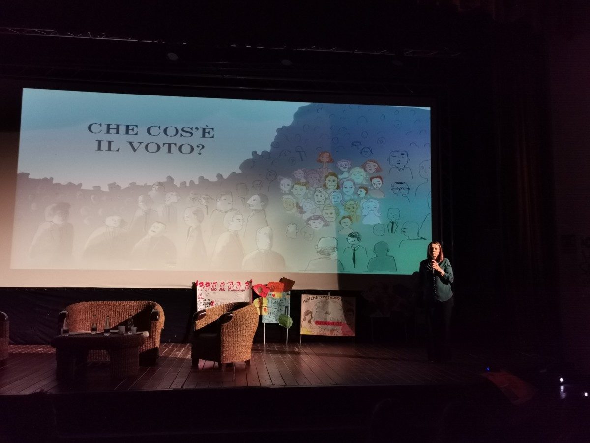 Animati dal presentatore Giuseppe Greco, i ragazzi hanno seguito le dinamiche con attenzione e ascoltato le riflessione dell’Autrice, commuovendosi di fronte a spezzoni video che affrontavano le tematiche dell’uguaglianza attraverso gli atteggiamenti innocenti e teneri dei bambini.