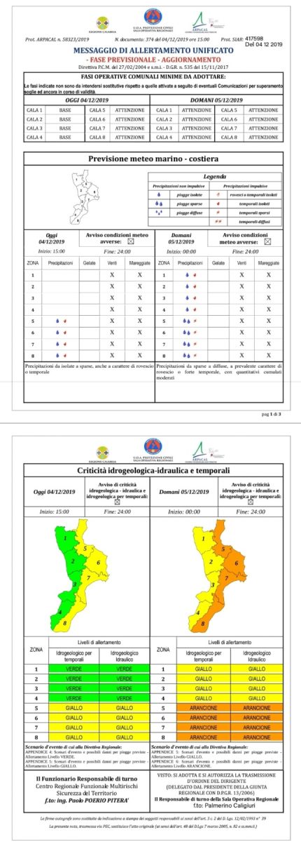 Visto il messaggio di Allertamento Unificato emesso oggi dalla Protezione Civile Calabria, che ha valenza di AVVISO DI CRITICITA’.
