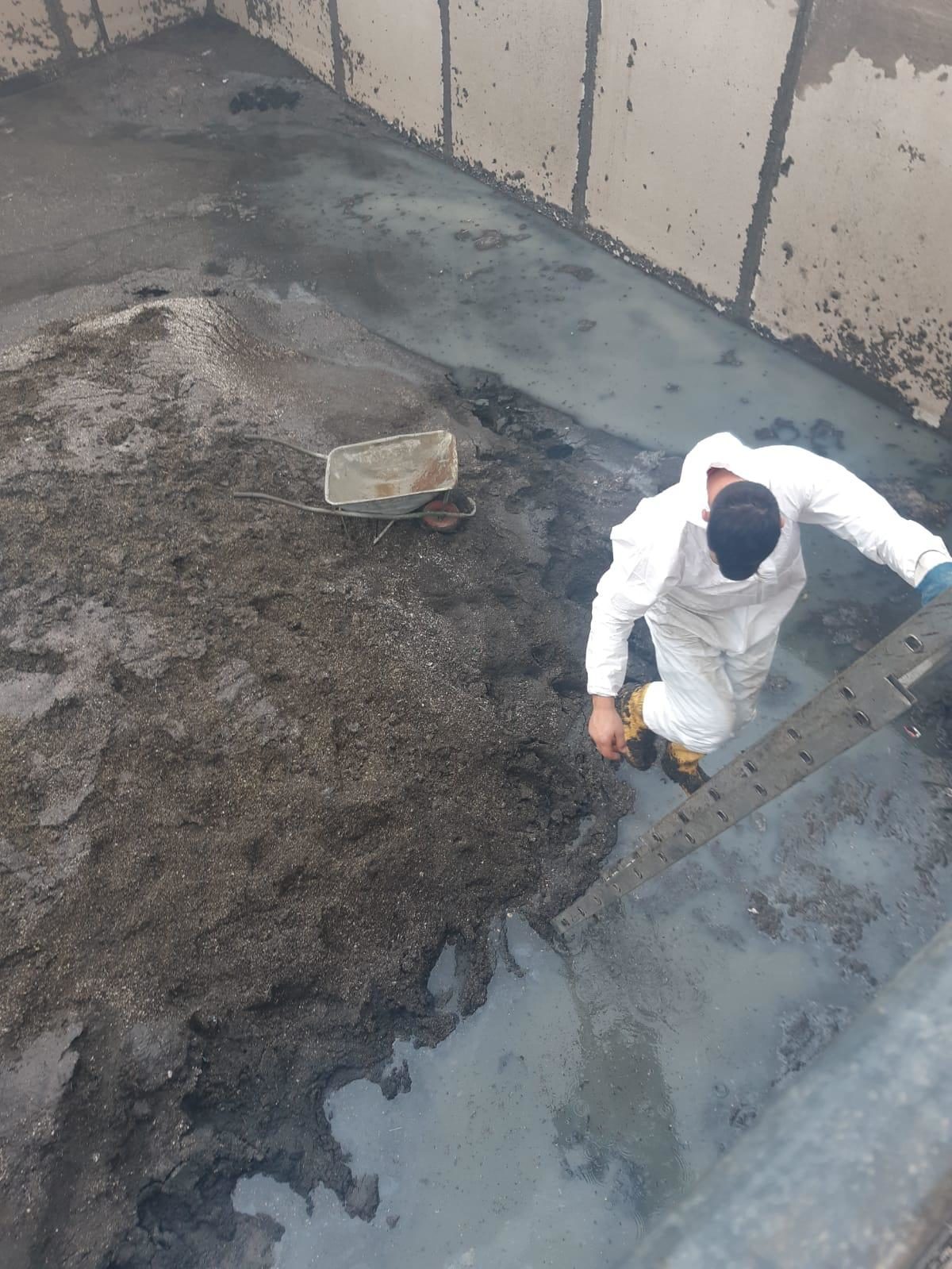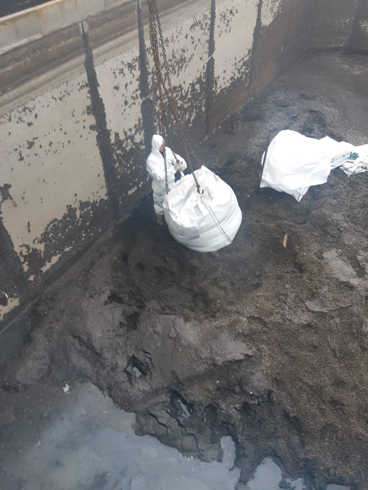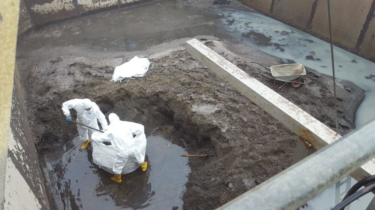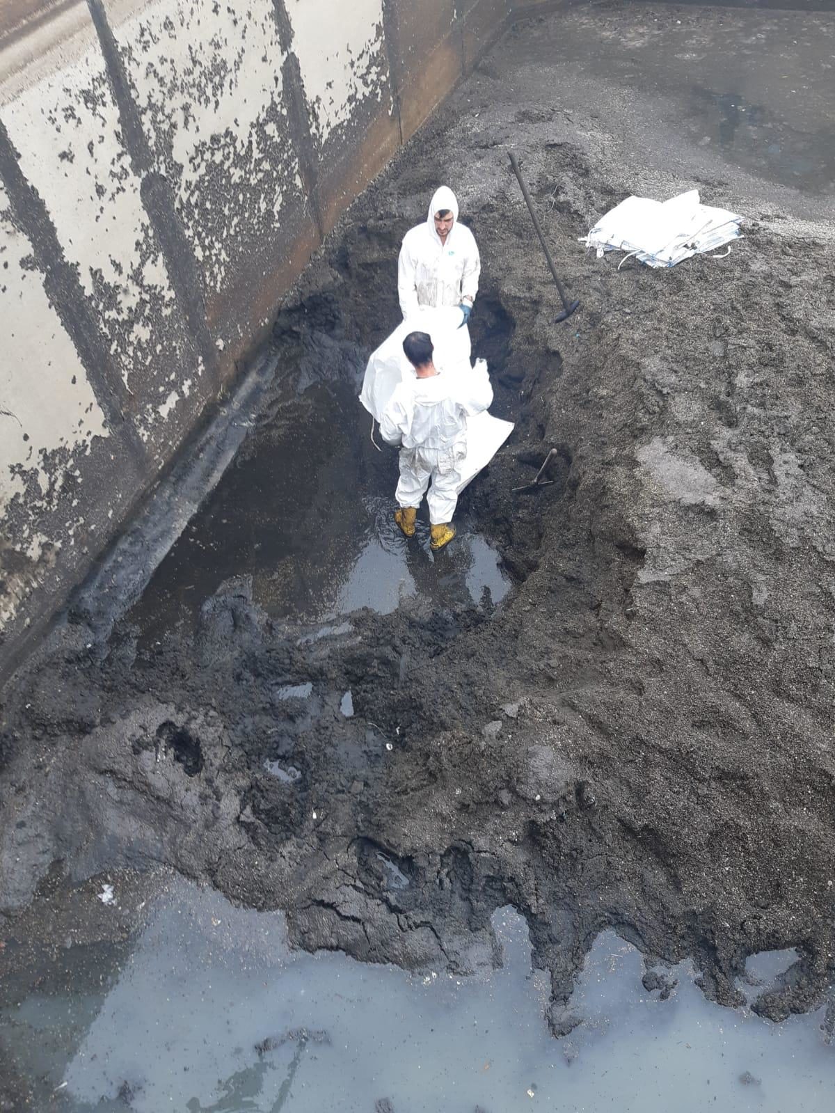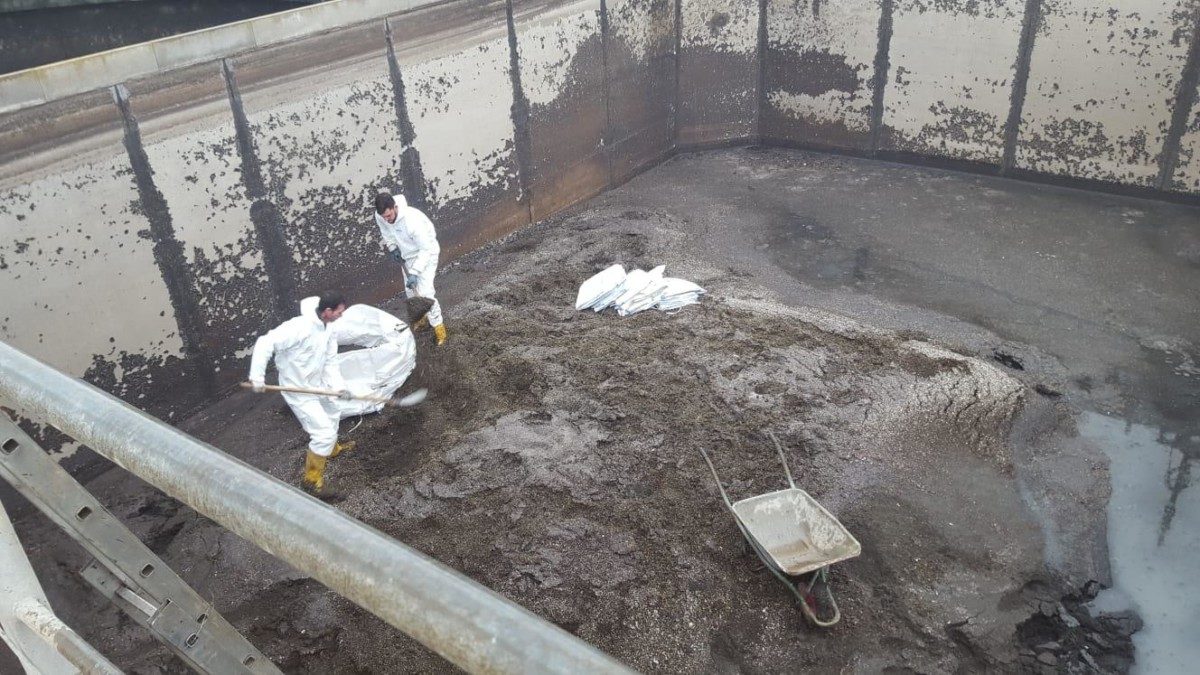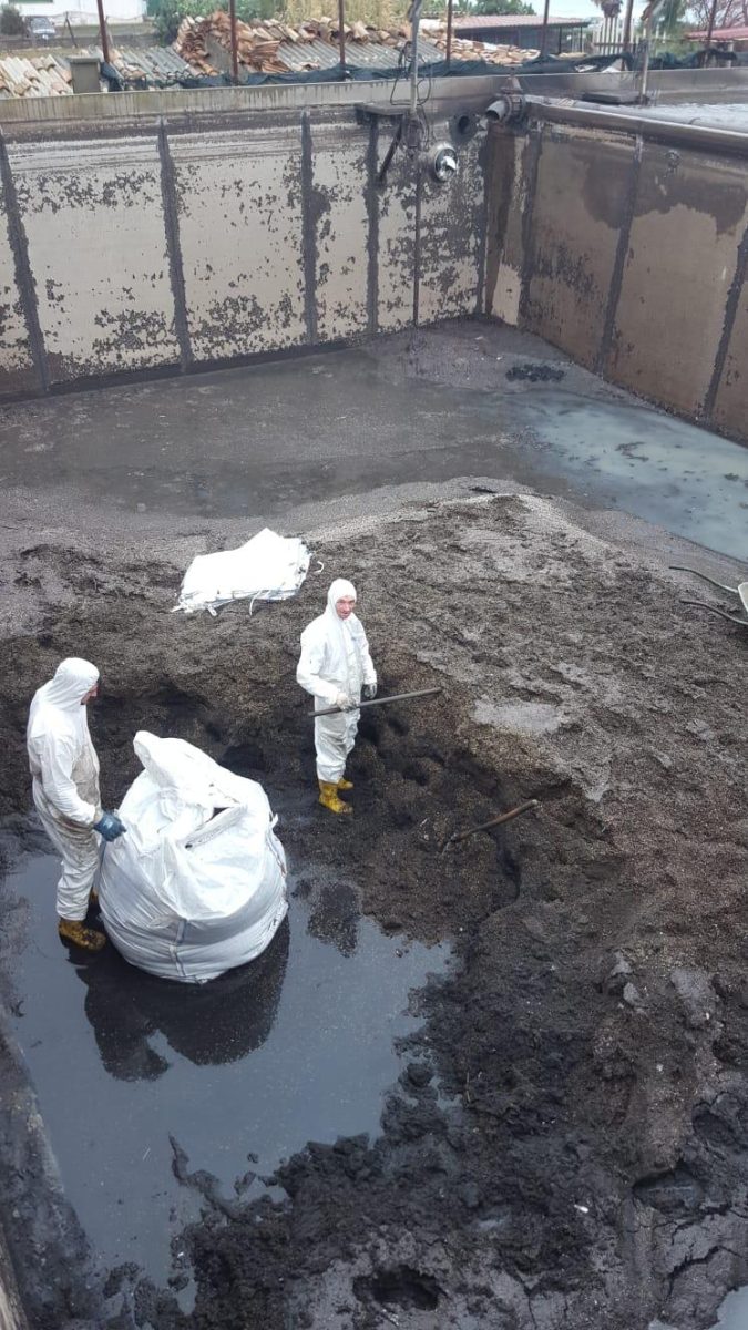 E’ stata trovata un enorme quantità di sabbia, che si era depositata sul fondo delle vasche.