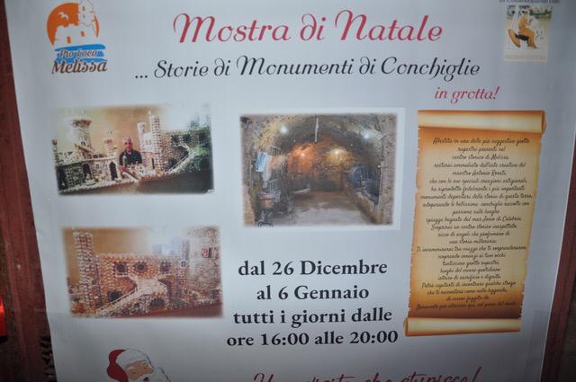 A tagliare il nastro la giovane Presidente della Pro Loco Melissa, Maria Francesca Spataro e Don Pino Giorno Parroco di Melissa. Presenti all’ inaugurazione molte Associazioni locali tramite i loro Presidenti quali: Prova Su Vino, Palio da Ruga, Salvati per Servire, Ass. Com Melissa, Voglia di Vincere, Melissa Cultura, Protezione Civile, Carovana dell’ Allegria, oltre ai Consiglieri Comunali Maltese e Catricala’ e naturalmente il dirittivo della Pro Loco e tanti soci iscritti alla medesima Associazione, oltre ad un discreto pubblico, curioso ed affascinato per questa insolita mostra allestita in luogo molto bello. La mostra resterà aperta fino al 6 Gennaio, giornata conclusiva durante la quale la Pro Loco con altre associazioni locali sta preparando una manifestazioni itinerante, tra tradizioni, sapori, artigianato ed attrazioni varie, tra cui l’arrivo della Befana dal camino e l’ uscita delle streghe dalle Grotte come leggenda racconta, che proprio Melissa trovarono riparo fuggendo da Benevento.