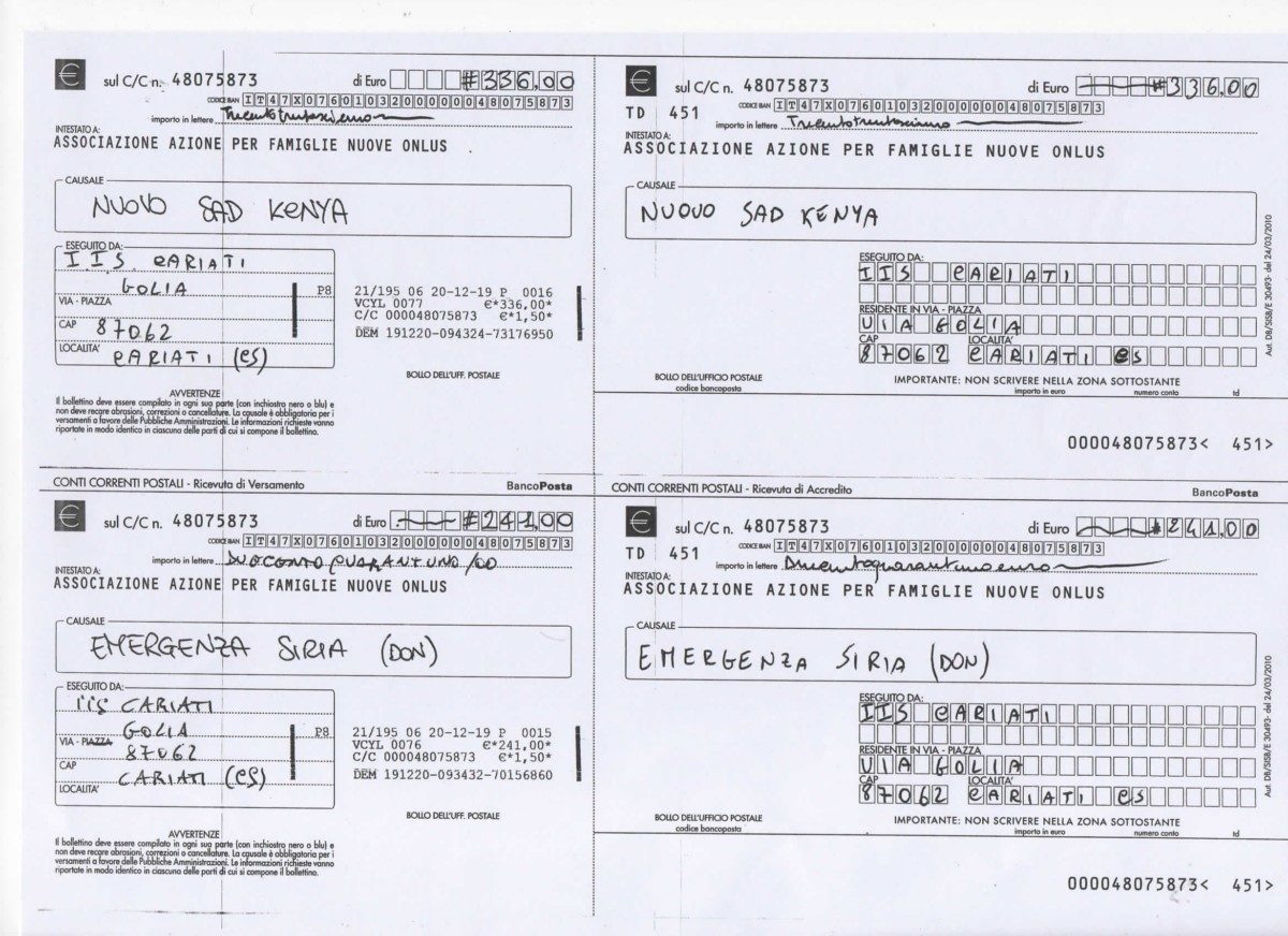 L’anno 2019 si chiude, all’IIS Cariati, con una giornata di solidarietà voluta dal D.S. Prof.ssa Sara Giulia Aiello. L’evento, organizzato dalla prof.ssa Alessandra Curcio ha coinvolto tutti gli alunni dell’IIS, il personale docente, il personale ATA ed amministrativo, in una raccolta fondi da destinare all’AFN (Associazione Azione Per Famiglie Nuove Onlus) per progetti di sostegno a distanza in Kenya e progetti per il contenimento delle emergenze in Siria. La raccolta fondi si è conclusa giorno 19 Dicembre con un convegno, tenutosi nell’aula magna del Liceo scientifico di Cariati, in cui hanno partecipato anche Sara Felici e Laura Gagliardi in rappresentanza dell’Associazione AFN. I lavori sono stati introdotti dal D.S., Prof.ssa Sara Giulia Aiello, che si è soffermata sul valore didattico dell’educazione alla solidarietà e l’importanza di trasmetterla ai giovani. A seguire il prof. Domenico Liguori ha intrattenuto la platea con il tema: La Stella dei Magi tra Scienza e Religione. Questi momenti di riflessione sono stati allietati da intermezzi musicali da parte di Cosenza Giada (chitarra), Fortino Alisey (voce) e Graziano Michela (violino). La giornata si è conclusa con gli auguri di Buon Natale e l’assaggio dei panettoni offerti dagli alunni del Liceo di Cariati.