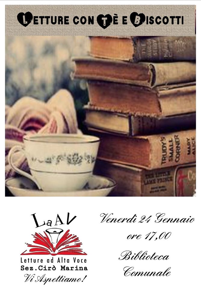 Venerdi 24 gennaio, il Circolo LaAV ritorna con le Letture, Tè e Biscotti nella biblioteca Comunale di Cirò Marina