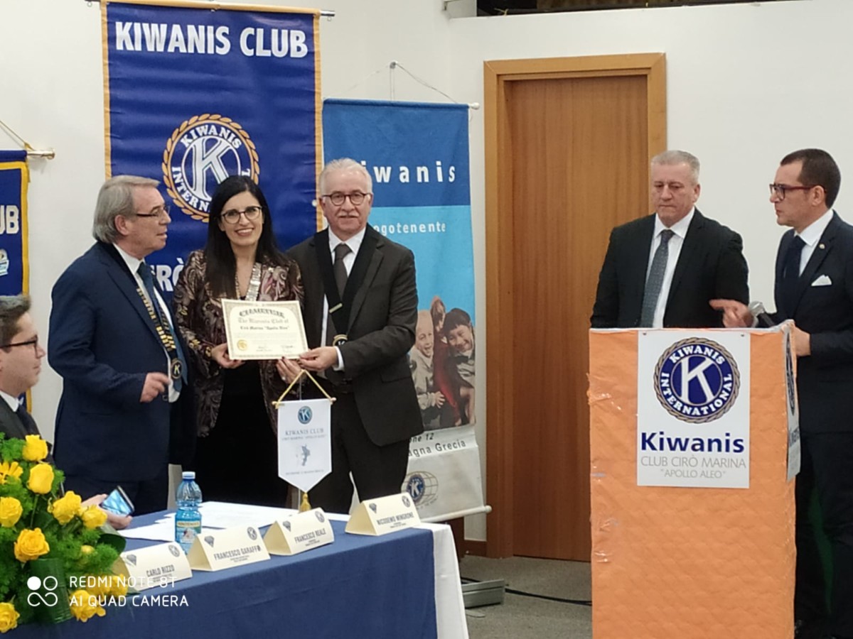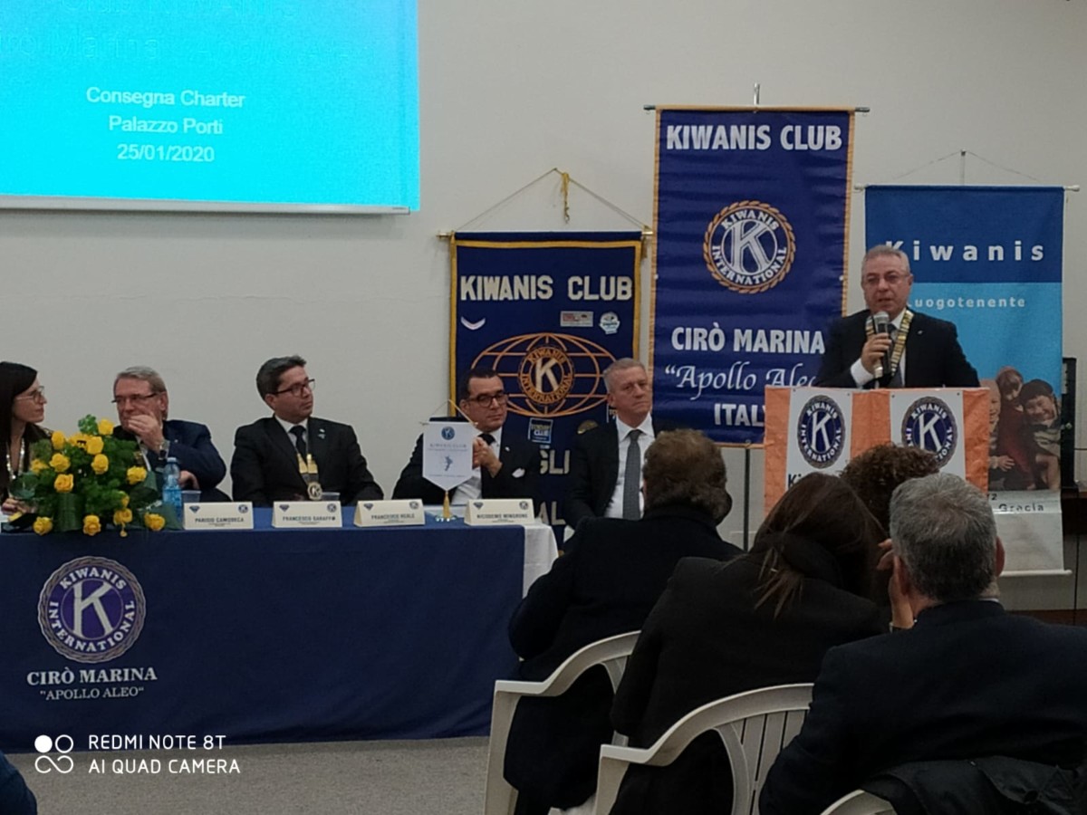 A bordo sono saliti: Francesco Antonio Amodeo, Nelly Brisinda, Caterina Bruno, Sabrina Ceccacci, Vincenzo De Franco, Daniela Falvo, Roberto Falvo, Cataldo Malena, Ettore Massara, Nicodemo Mingrone, Francesco Pompò, Carlo Rizzo, Giovanni Rizzo, Graziella Spinali, Maria Teresa Tristaino. Professionisti e non solo, che hanno deciso di dedicare parte del proprio tempo e delle proprie energie al servizio dei bambini, sapendo che anche un’ora del loro tempo ed un piccolo gesto può cambiare la loro vita, sottraendolo alla fame, alla malnutrizione, al gioco, al diritto di studiare, all’essere curati e amati. Meta di questo, speriamo lungo viaggio, una società più consapevole e rispettosa dei bisogni dei bambini di tutto il mondo. Parafrasando, stiamo parlando della consegna della Charter al Club “Apollo Aleo” da parte del Kiwanis italia S Marino, avvenuto alla presenza del Presidente Italia, Maura Magni, del luogotenente della Divisione 12 Magna Graecia, Basilio Valente e del club sponsor di Corigliano, rappresentato dal presidente Parisio Camodeca. Una cerimonia che di fatto, sancisce la nascita nel nostro territorio di una associazione che nelle motivazioni personali e umane universali, trova la sua essenza e il suo completamento operoso. A presiedere il club di Cirò Marina, Carlo Rizzo che sarà affiancato da Francesco Antonio Amodeo come segretario, Nicodemo Mingrone, cerimoniere, Vincenzo De Franco, tesoriere. Questa la squadra che darà vita, unitamente a tutti i soci, come ha illustrato nel suo intervento di insediamento, Carlo Rizzo, a un ricco programma che vedrà il Club impegnato in diverse concrete iniziative come la giornata internazionale sull’epilessia già nel mese prossimo, ad aprile un incontro per la giornata mondiale sull’autismo, screening cardiologici pediatrici e poi, raccolta fondi per sostenere un importante progetto per aiutare i bambini dello Yemen, illustrato dal Kiwaniano, Carlo Capone. Durante la serata, allietata dalla musica del giovane più volte premiato, Matteo Liotti, si sono registrati gli interventi del Sindaco di Melissa, Raffaele Falbo,e del presidente facente funzioni della provincia di Crotone, Giuseppe Dell’Aquila i quali hanno rivolto parole di apprezzamento e sostegno al neo club. Scambio di gagliardetti fra il neo Clu Apollo Aleo e l’associazione Lions Club di Cirò Marina, presente con il presidente, Antonio Gallella. Prima delle conclusioni di Maura Magni, gli interventi del tesoriere Luigi Ciuto, del segretario Francesco Caraffa e dello steso luogotenente della divisione Calabria, Basilio Valente. ”Il Kiwanis è un’organizzazione mondiale di volontari, impegnati a migliorare il mondo, un bambino ed una comunità alla volta. Questa è la nostra mission, che si esprime attraverso il motto: “Serving the Children of the world”, ha detto nell’intervento conclusivo Maura Magni, la quale si è detta compiaciuta e piacevolmente colpita per l’efficienza e aria amicale e collaborativa registrata nel neo club. Ha inoltre rivolto parole di ringraziamento e compiacimento anche verso la rappresentante del movimento internazionale, Special Olympics Italia della nostra provincia, Lucia Sacco, con il quale esiste un protocollo d’intesa attivo e fattivo. In conclusione, omaggio floreali per le donne del Club. “ Il Kiwanis nel futuro, come adesso, continuerà ad esercitare un’influenza positiva nelle comunità di tutto il mondo, affinché un giorno tutti i bambini possano vivere in comunità che credono in loro, che si prendono cura di loro e che offrono loro il sostegno necessario per crescere”.