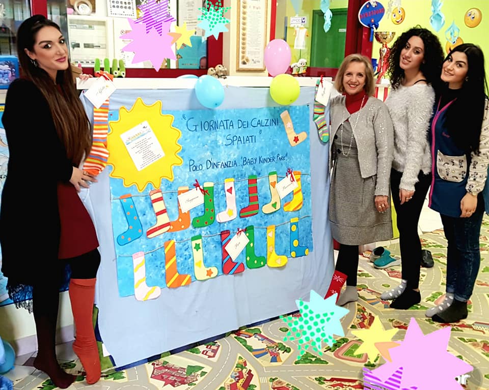 “Arrivata alla settima edizione sui social, ma alla decima dall’inizio dell’avventura reale, la Giornata dei calzini spaiati vuole coinvolgere grandi e piccini nello spirito più semplice dell’amicizia e del rispetto degli altri, della solidarietà e della specialità di ognuno di noi”. Così si legge nelle varie comunicazioni. Una giornata dedicata ad uno dei tanti temi sociali che oggi più che mai fanno riflettere sul ruolo di ognuno che dovrebbe essere improntato e indirizzato al bene comune, all’inclusione, alla socializzazione, all’accettazione e rispetto di ciò che è diverso. L’idea è partita da una scuola primaria, quella di Terzo di Aquileia in Friuli e ha trovato subito sostegno e spinta grazie alla sensibilità della maestra Sabrina supportata dalle sue amiche, Edy, Giulia, Silvia e Clara. Negli anni hanno contagiato migliaia di persone, scuole, famiglie, anziani, nonni che hanno condiviso lo spirito e la spinta allegra e solidale. Attenta e sensibile al tema, da cinque anni, non poteva mancare l’attenzione e lo spirito giocoso del Polo D’Infanzia Baby Kinder Park, che per la giornata di ieri, 7 febbraio, ha riproposto l’iniziativa di sensibilizzazione, invitando i baby, le insegnanti e il corpo genitoriale a indossare per un giorno un paio di calzini “spaiati”, contribuendo così, metaforicamente a colorare il mondo, i piedi, il cuore e potere dire “tutti uguali, tutti diversi, tutti importanti”. Concetti questi che puntualmente sono inseriti nel bagaglio educativo e formativo del Polo D’Infanzia Baby Kinder Park e che la dirigente, Lucia Sacco, non smette mai di attenzionare, promuovere, rendere partecipi i baby, perché sempre più convinta che “un futuro di pace si può ottenere se si educa sin dall’infanzia al rispetto, all’amore, all’accettazione della diversità. “